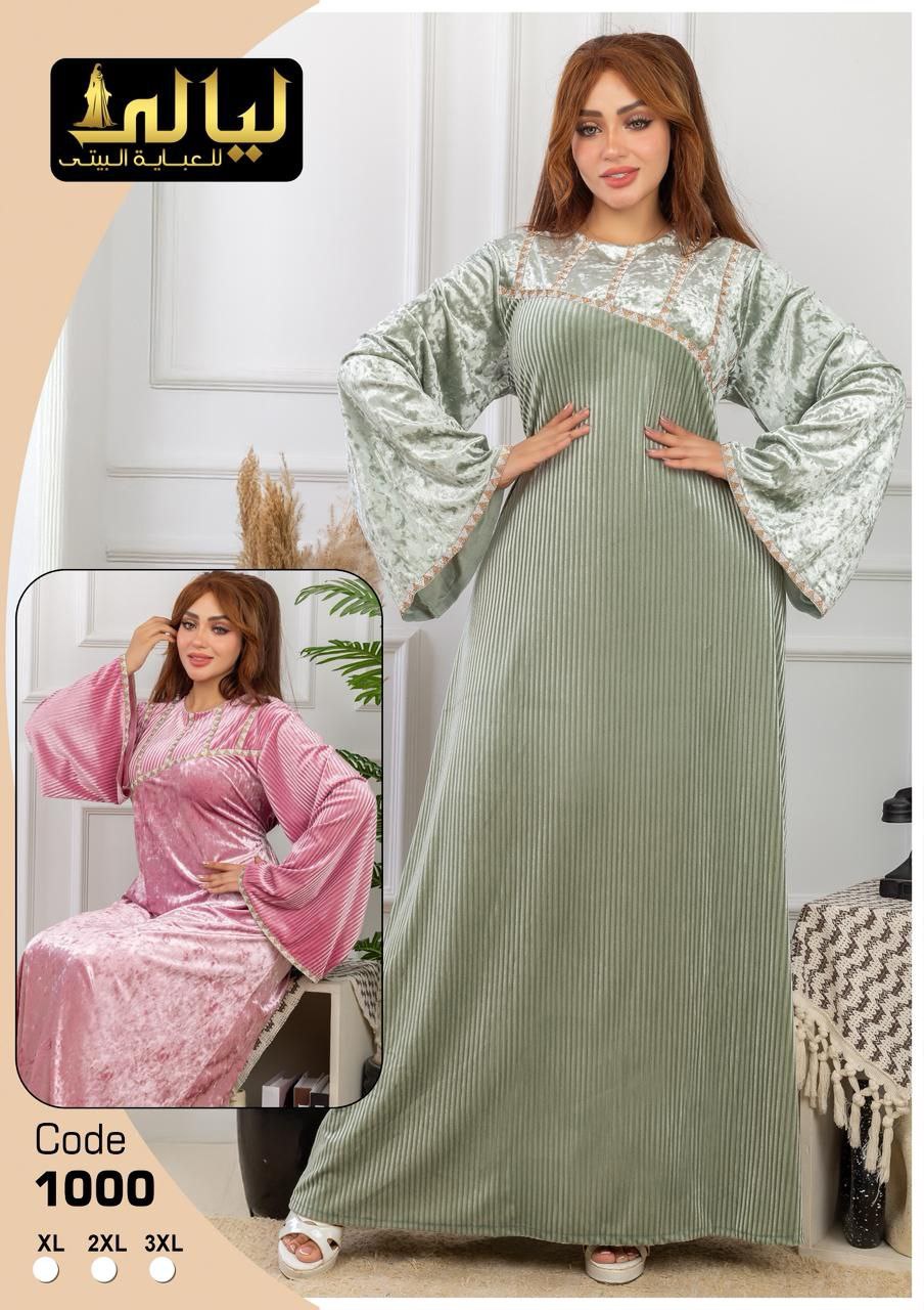 استمتعي بالراحة والأناقة مع عباتنا الحريمي القطيفة الناعمة، المصممة خصيصاً لتناسب أسلوب حياتك اليومي. تتميز بتصميم شيك وأكمام واسعة، مما يجعلها مثالية للخروج أو للبقاء في المنزل. متاحة بمقاسات XL، 2XL، و3XL، لتناسب جميع الأحجام وتضفي عليكِ لمسة من الجمال والأنوثة.