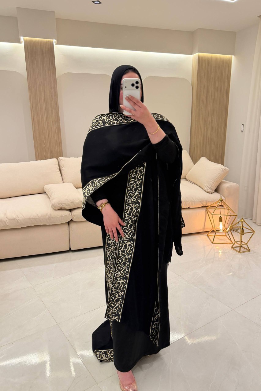 تقدم لكِ عباية حرير بتصميم أنيق وتطريز مميز على الأطراف، تمنحك شعورًا بالفخامة والراحة في كل مناسبة. خامة ناعمة وانسيابية تجعلها الاختيار المثالي للخروج والمناسبات الخاصة. لا تفوتي فرصة إضافة لمسة من الأناقة إلى خزانة ملابسك!