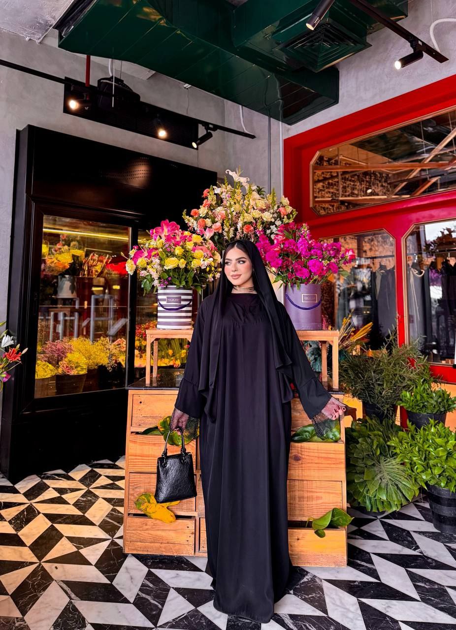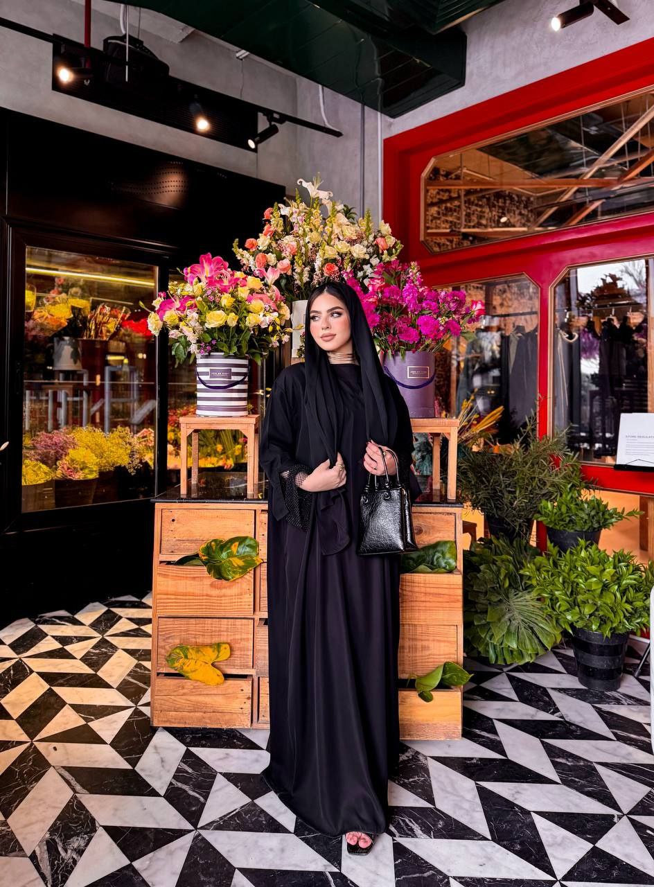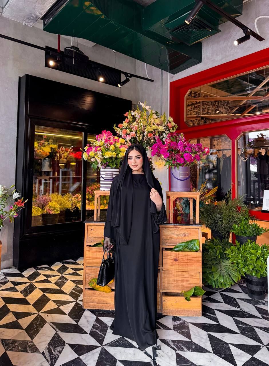 عبايتنا الفاخرة مصنوعة من خامة الحرير السعودي المميزة، وتأتي مع طرحة رائعة تضيف لمسة من الشياكة والجمال. إن كنت تبحث عن إطلالة أنيقة ومختلفة، فهذه العباية هي الخيار المثالي لك!