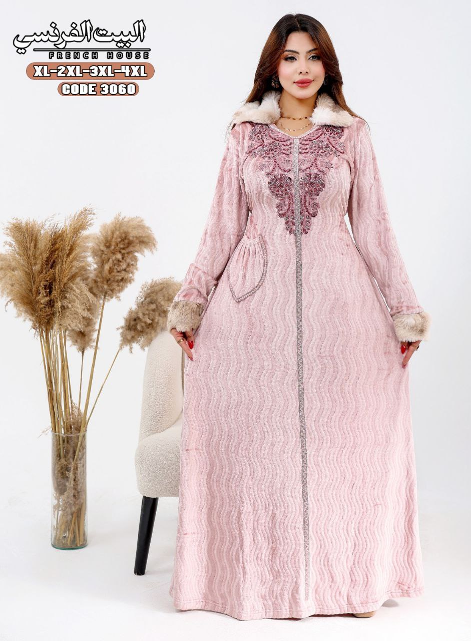هل تبحث عن قطعة مميزة تضيف لمسة من الأناقة إلى خزانة ملابسك؟ عباية القطيفة الشتوي بلون بينك هادي هي الخيار المثالي لك! تتميز هذه العباية بنقشة مموّجة أنيقة وتطريز صدري فخم مع خط فضي طولي، مما يجعلها تناسب جميع المناسبات والخروجات.