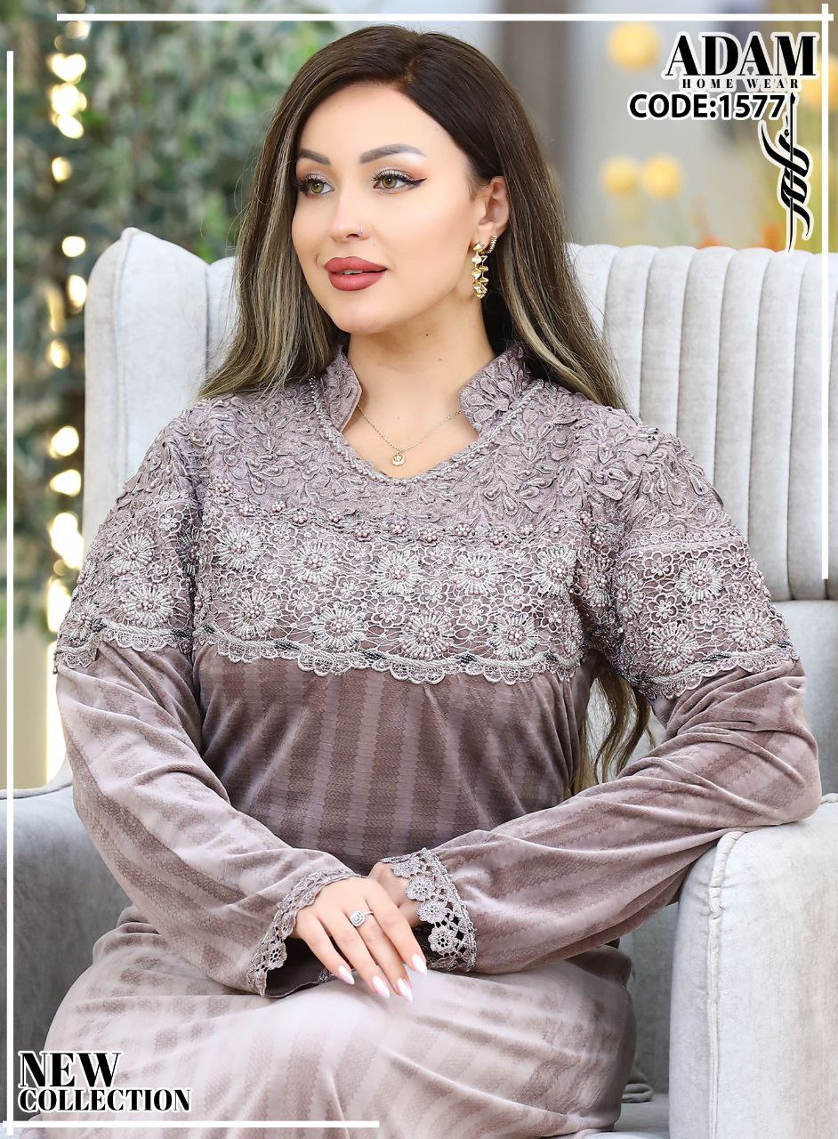عباية شتوي قطيفة ناعمة بتطريز دانتيل راقي على الصدر، مريحة ودافية وتدي شكل شيك في اللبس، مناسبة للبيت والخروج، ون سايز تناسب أغلب المقاسات.