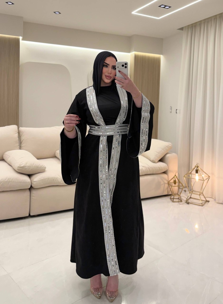 استمتعي بإطلالة ساحرة مع عباية سويدي فخمة تتميز بتفاصيل تطريز لامعة على الحواف وحزام يحدد الخصر، مما يمنحكِ مظهراً راقياً وجذاباً. هذه العباية ليست مجرد قطعة ملابس، بل هي تعبير عن أسلوبكِ وذوقكِ الرفيع.