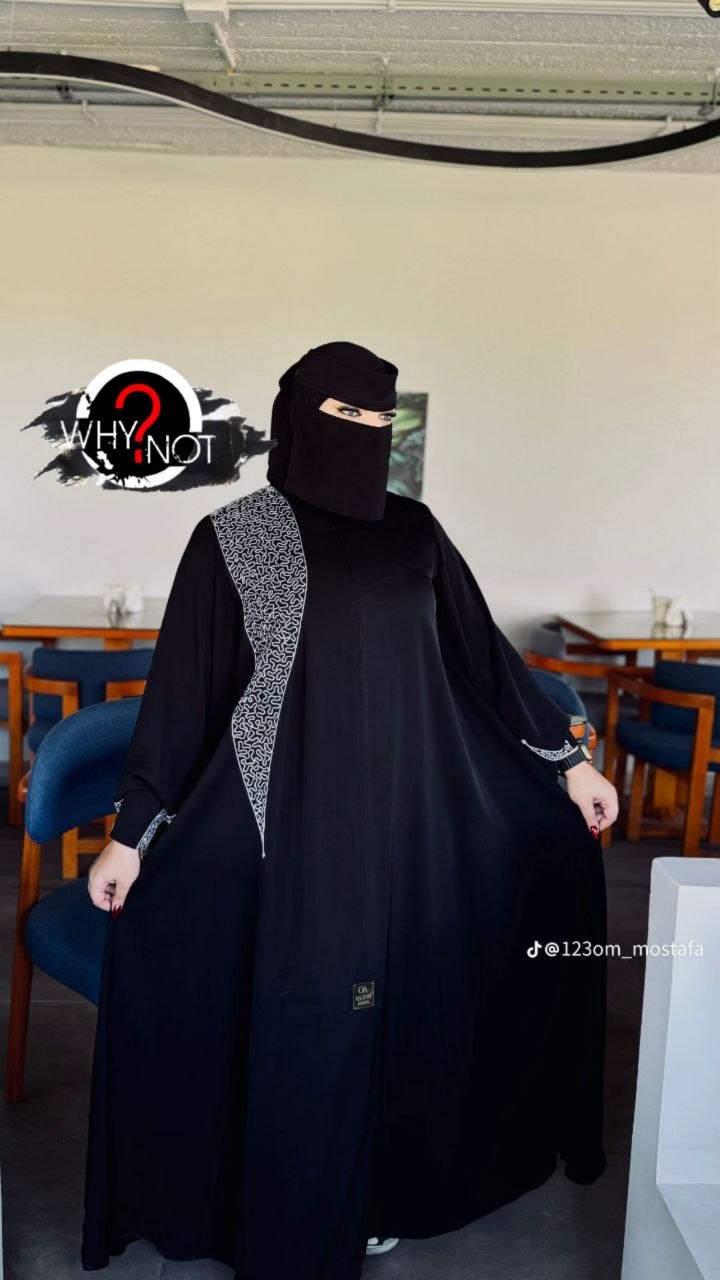 - تصميم عبايه بتطريز جميل على الصدر والظهر، هيديكي طلة مميزة.