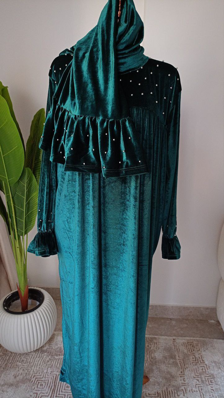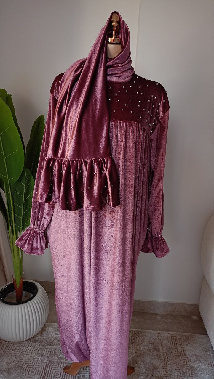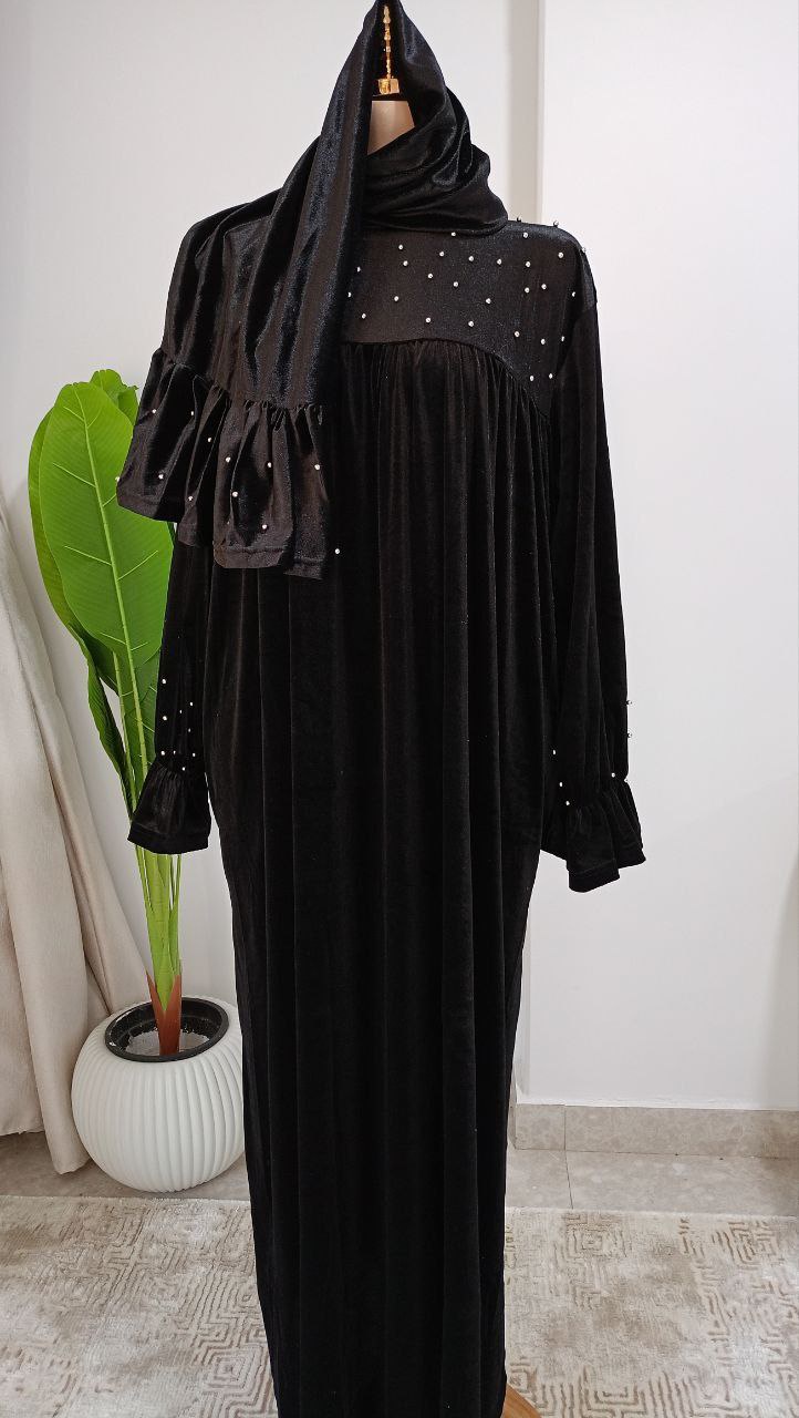 تقدم لك أسدال قطعتين بطرحة منفصلة بخامة قطيفة فرنساوي ناعمة وتقيلة، مما يجعله الخيار المثالي لأيام الشتاء الباردة. هذه القطعة ليست فقط أنيقة، بل توفر لك الدفء والراحة التي تستحقينها. مع تصميم مريح يناسب مقاسات من 65 وحتى 110 كجم، ستحصلين على مظهر أنيق وشعور رائع في نفس الوقت.