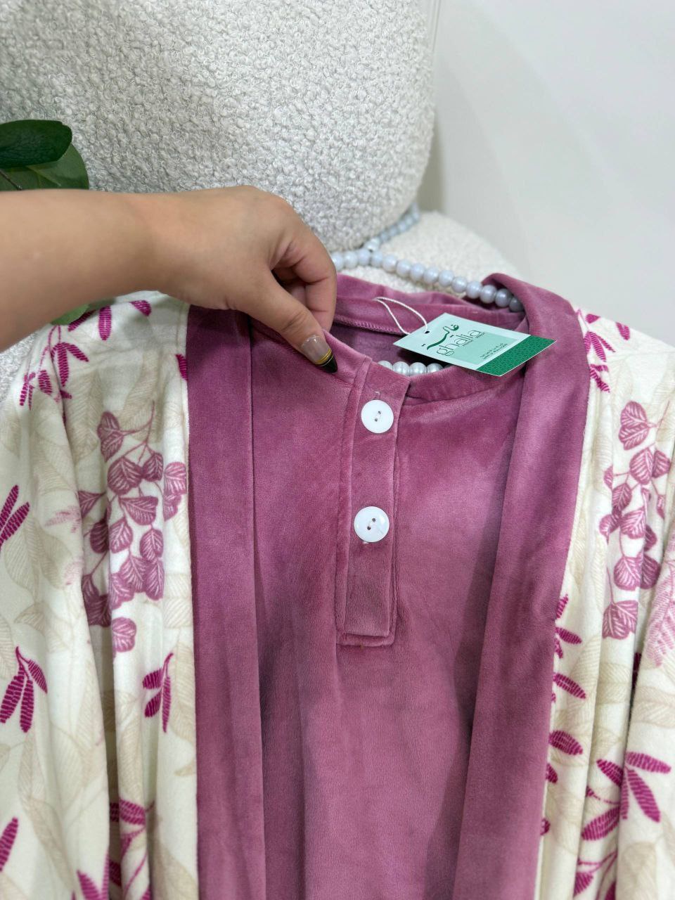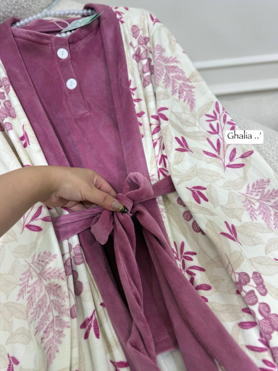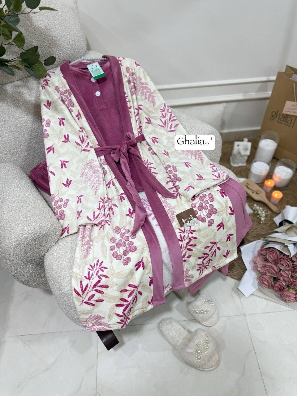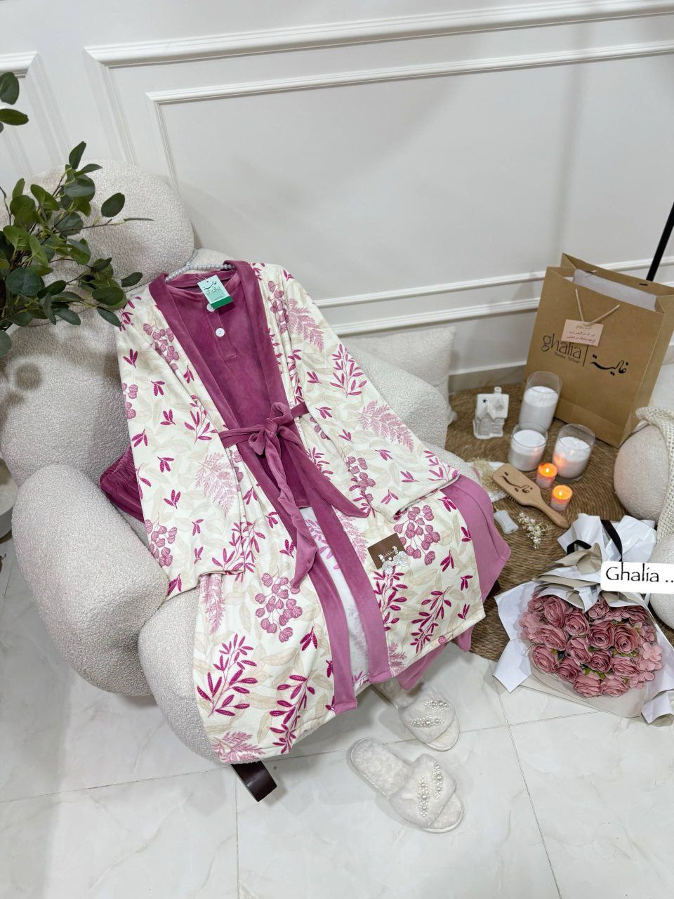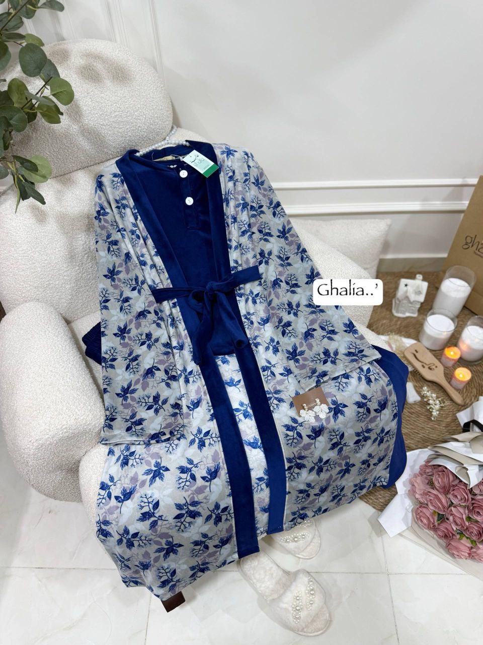 إذا كنتِ تبحثين عن بجامة تجمع بين الأناقة والراحة، فلا تفوتي فرصة اقتناء بجامة ٤ قطع المميزة! مكونة من بنطلون واسع، بلوزة كت بزرارين، روب طويل وحزام منفصل، هذه البجامة مثالية لكل الأمهات اللي عايزين يكونوا في قمة أناقتهم في البيت.