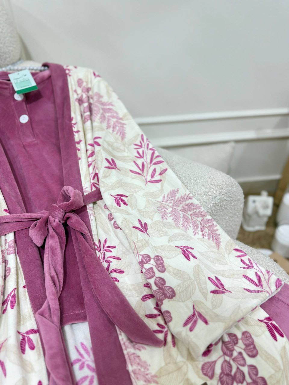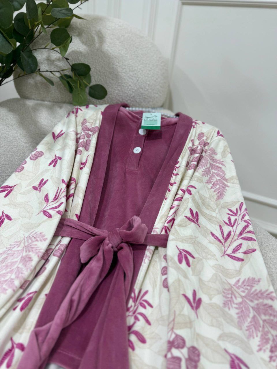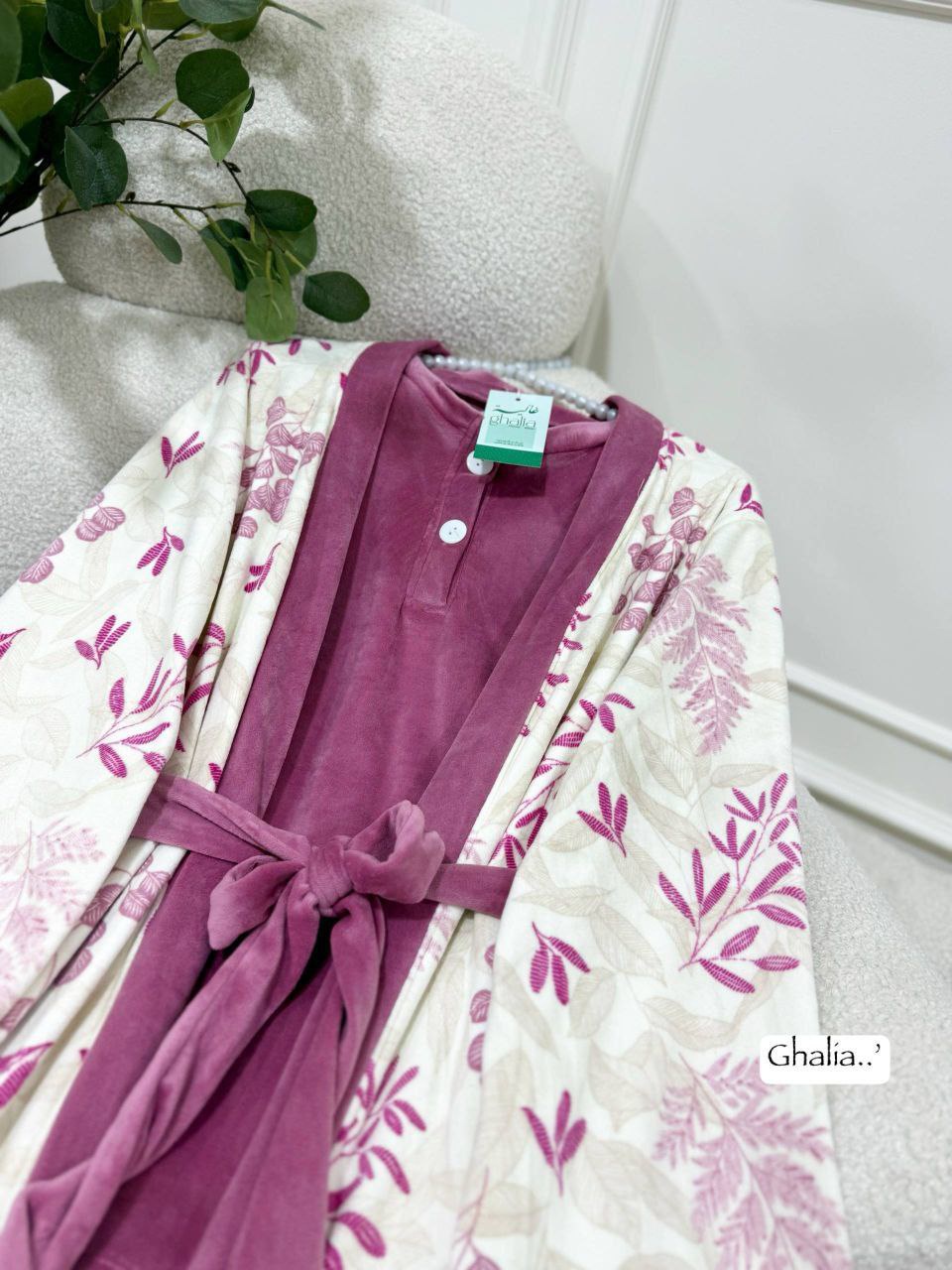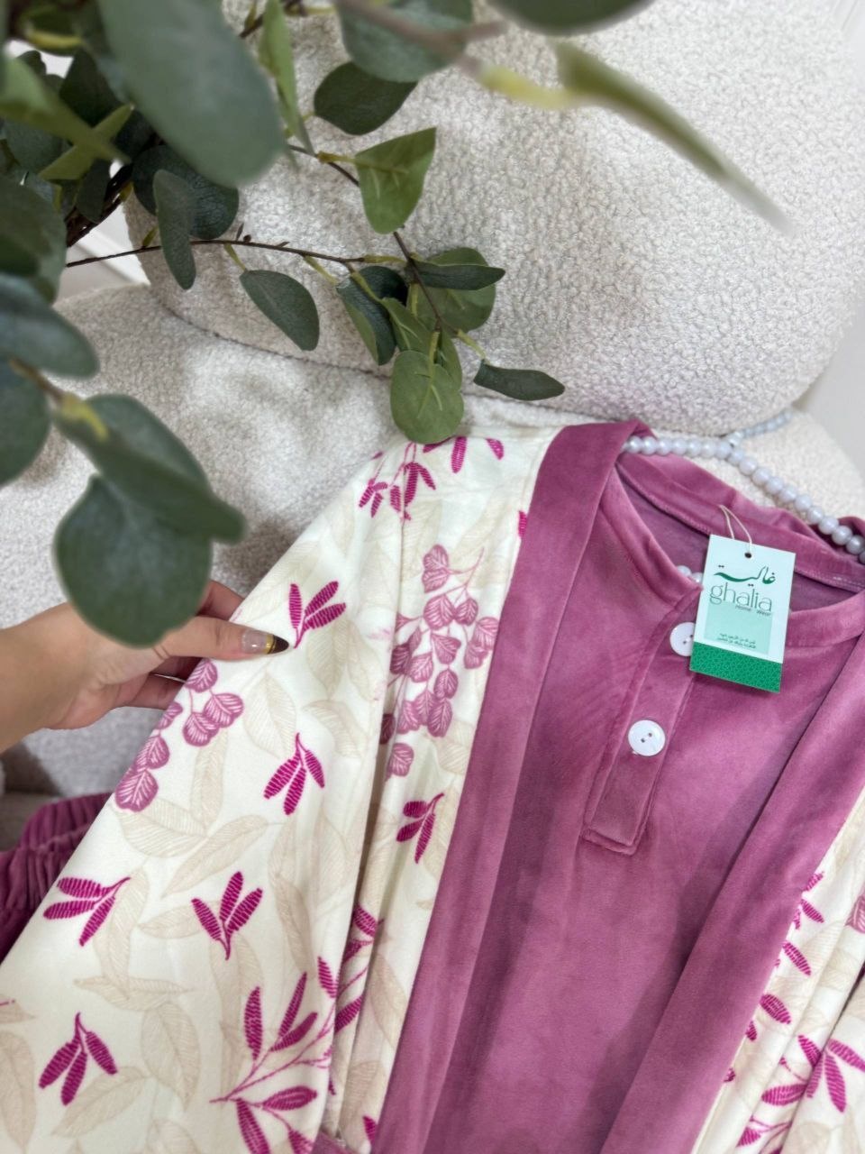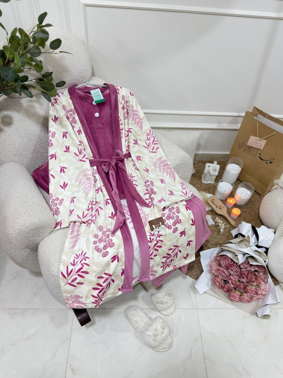 إذا كنتِ تبحثين عن بجامة تجمع بين الأناقة والراحة، فلا تفوتي فرصة اقتناء بجامة ٤ قطع المميزة! مكونة من بنطلون واسع، بلوزة كت بزرارين، روب طويل وحزام منفصل، هذه البجامة مثالية لكل الأمهات اللي عايزين يكونوا في قمة أناقتهم في البيت.