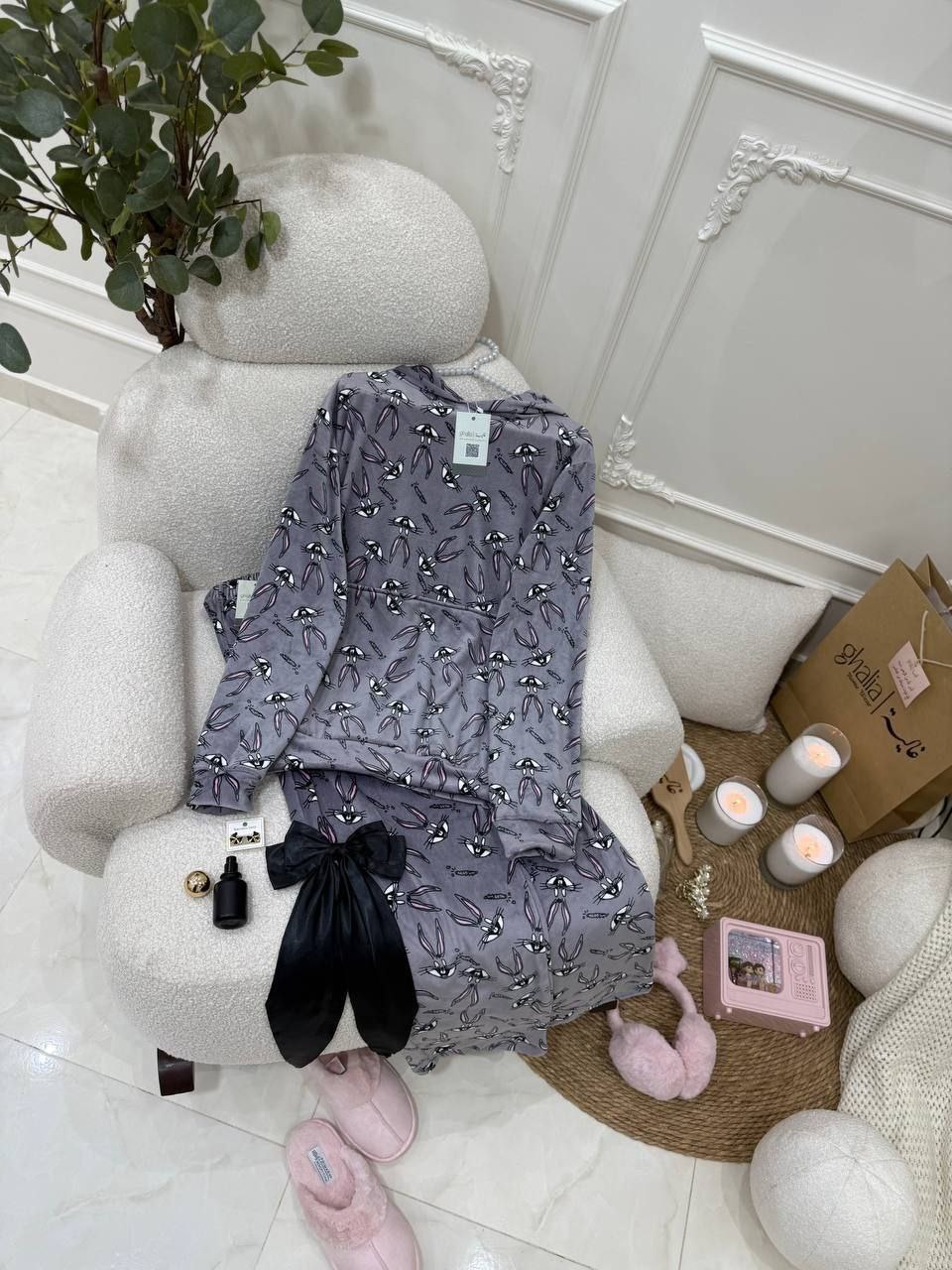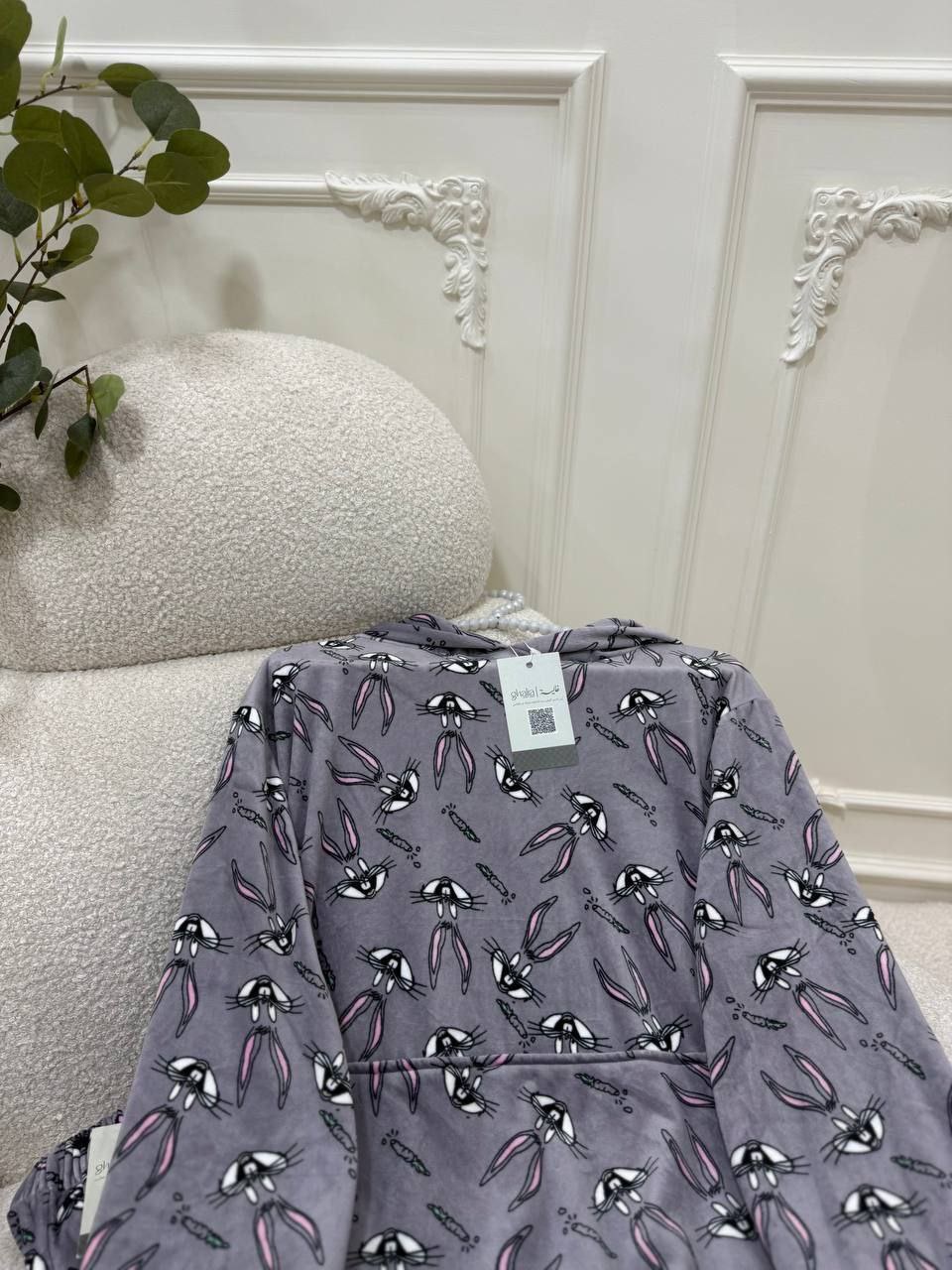 تتكون بجامة الأرنب من قطعتين مريحة وعصرية تجمع بين الأناقة والدفء. يأتي الهودي بكابيشو مع جيوب كبار لتلبية احتياجاتك اليومية، بينما يضيف بنطلون الوايد ليج واسع لمسة من الراحة. خامة هايدي المستوردة ناعمة جداً ومبطنة حرارياً لتبقيك دافئاً طوال الوقت دون أن تشعري بالضيق. مثالية للنساء من وزن 75 إلى 100 كجم وطول 170 سم!
