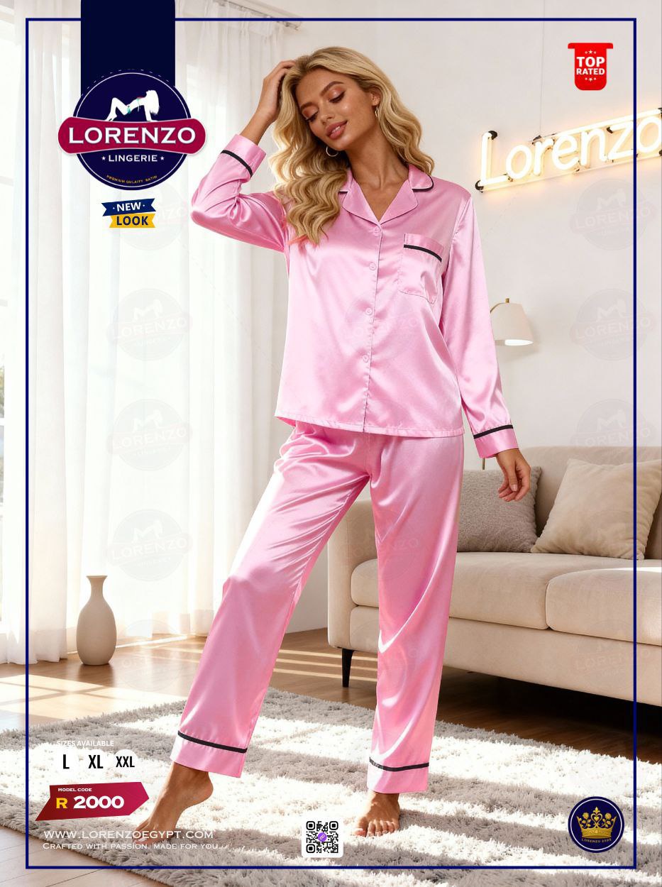 استمتعي بالفخامة والراحة مع بيجامة ستان حريمي قطعتين!