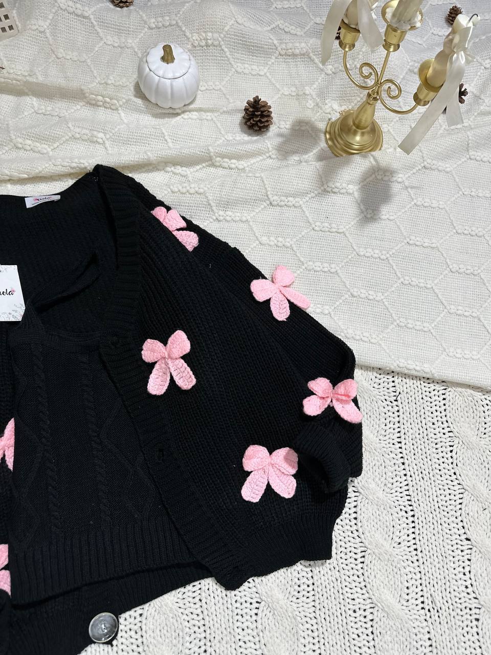 مستوحاة من الموضة الحالية، الجاكيت متوفر بلونين مميزين: الأسود والبنكي. بفضل تصميمه الفريد، هتقدري تلبسيه على جيب سويدي، بنطلون، أو حتى فستان بسيط. كل قطعة من الجاكيت مزينة بفبونات ساحرة، مما يضيف لمسة من الأناقة والأنوثة.