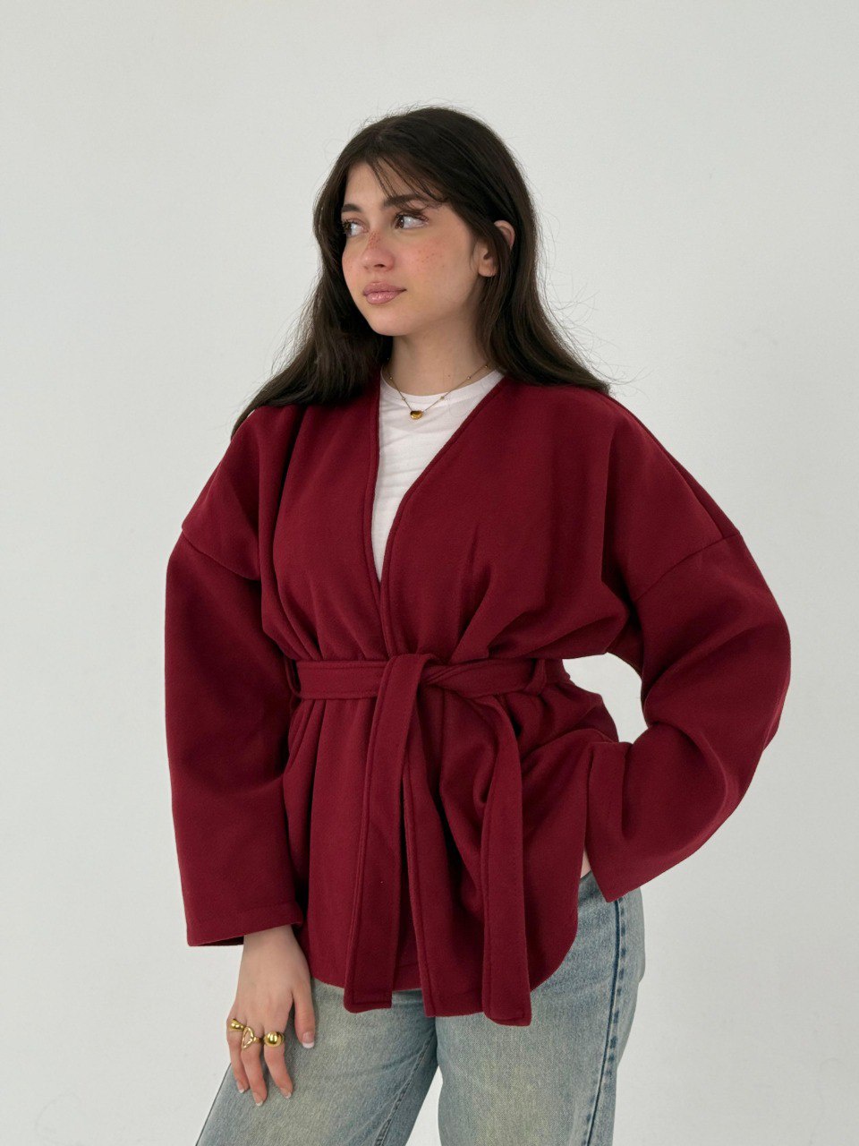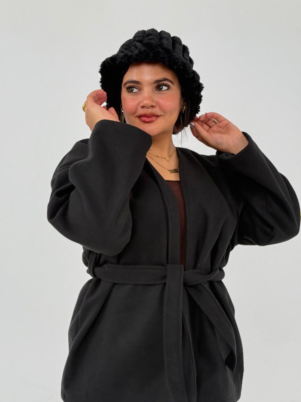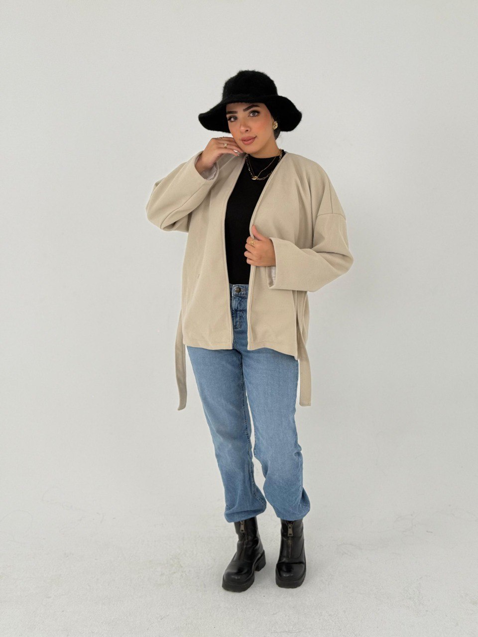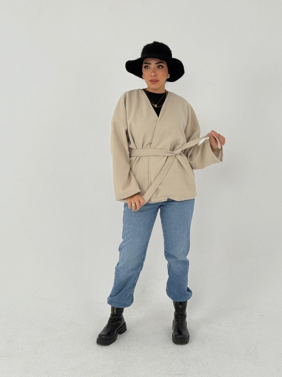 متوفر بألوان جذابة: أسود، بيج، وبرجاندي 🔥 عشان تناسب ذوقك وتقدر تلبسه في أي مناسبة. الجاكيت دافي ومبطن، هيوفرلك الحماية من البرد ويخليك دايمًا متألق.