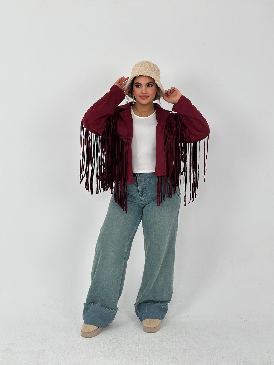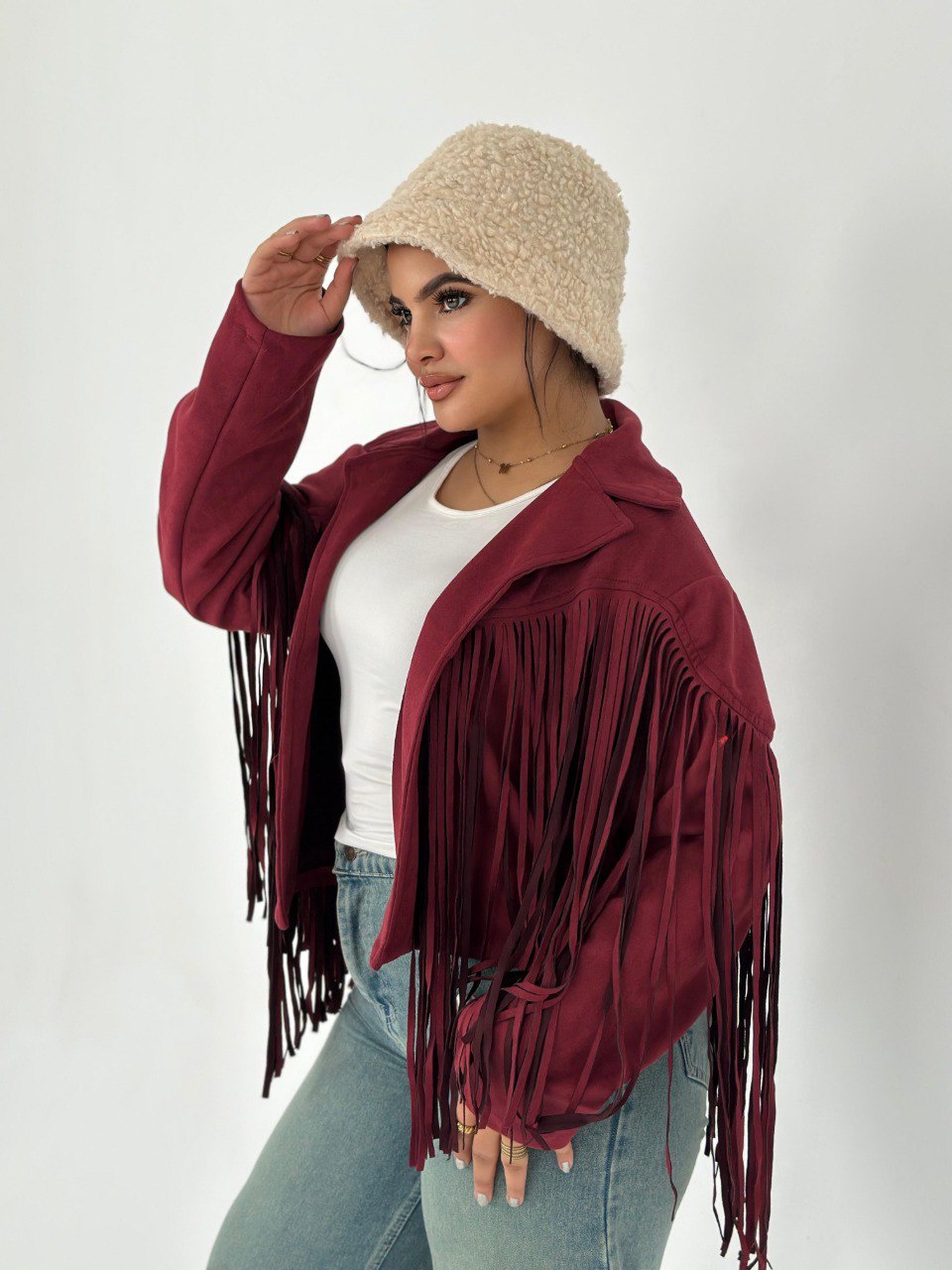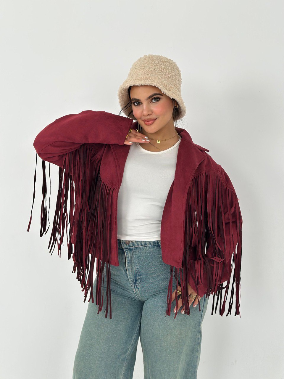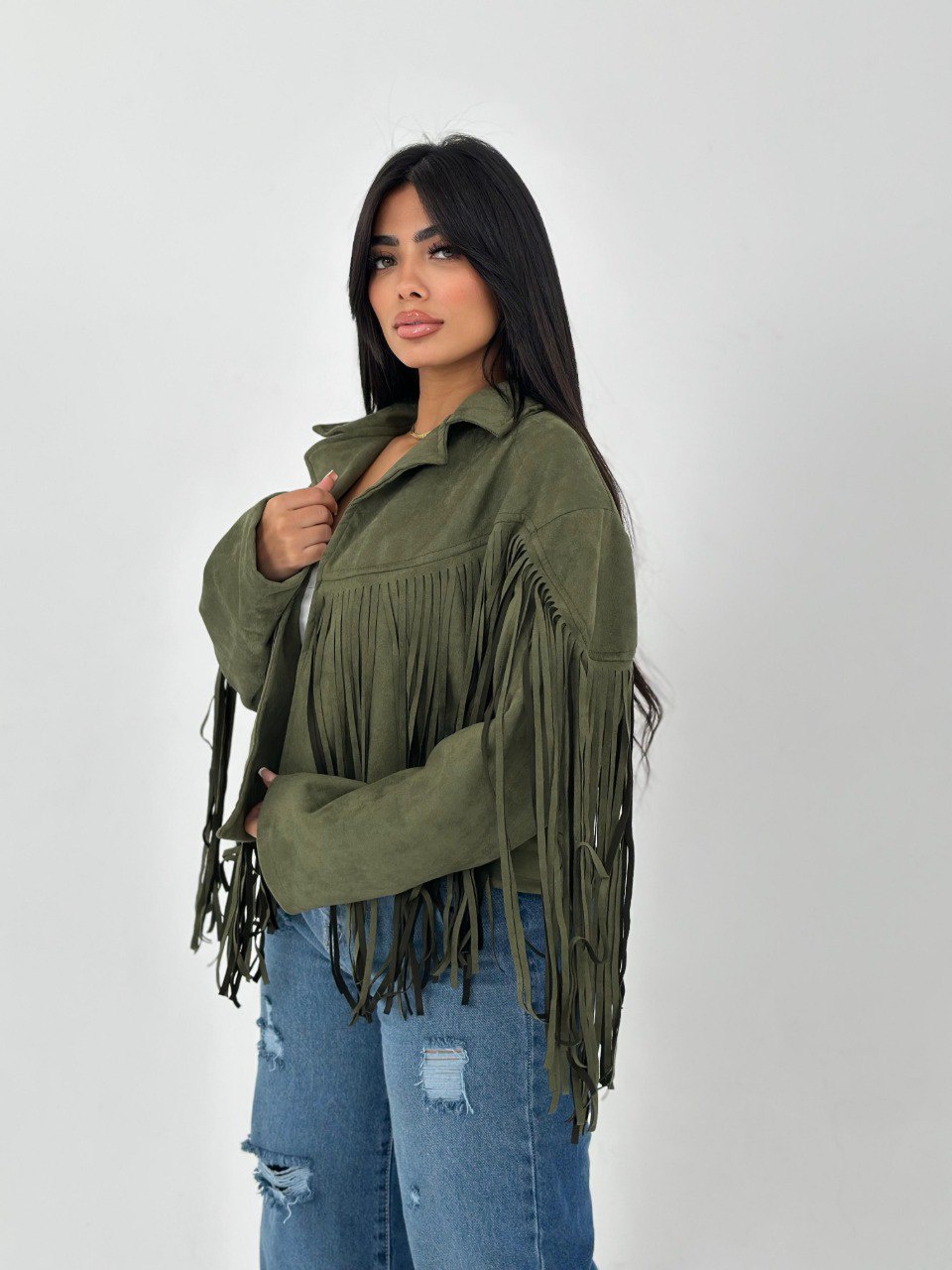 لو عايز تضيف لمسة من الأناقة لملابسك، يبقى الجاكيت الشمواه بشراشيب هو الخيار المثالي ليك! خامته ناعمة ومريحة، هتخليك تحس بالراحة في كل الأوقات. متوفر بلونين مميزين: زيتي وبرجاندي، هتلاقي نفسك متألق في كل مناسبة!