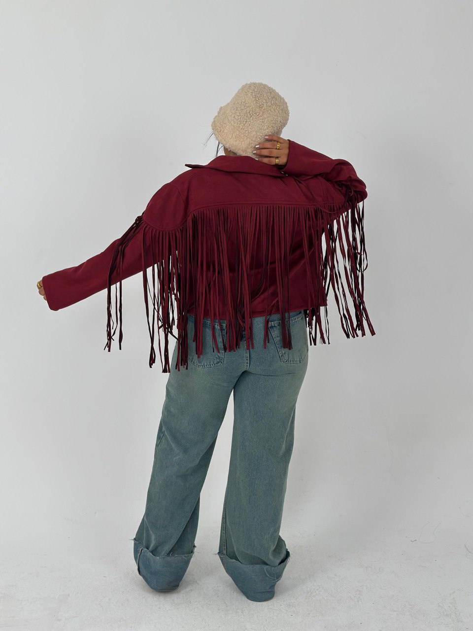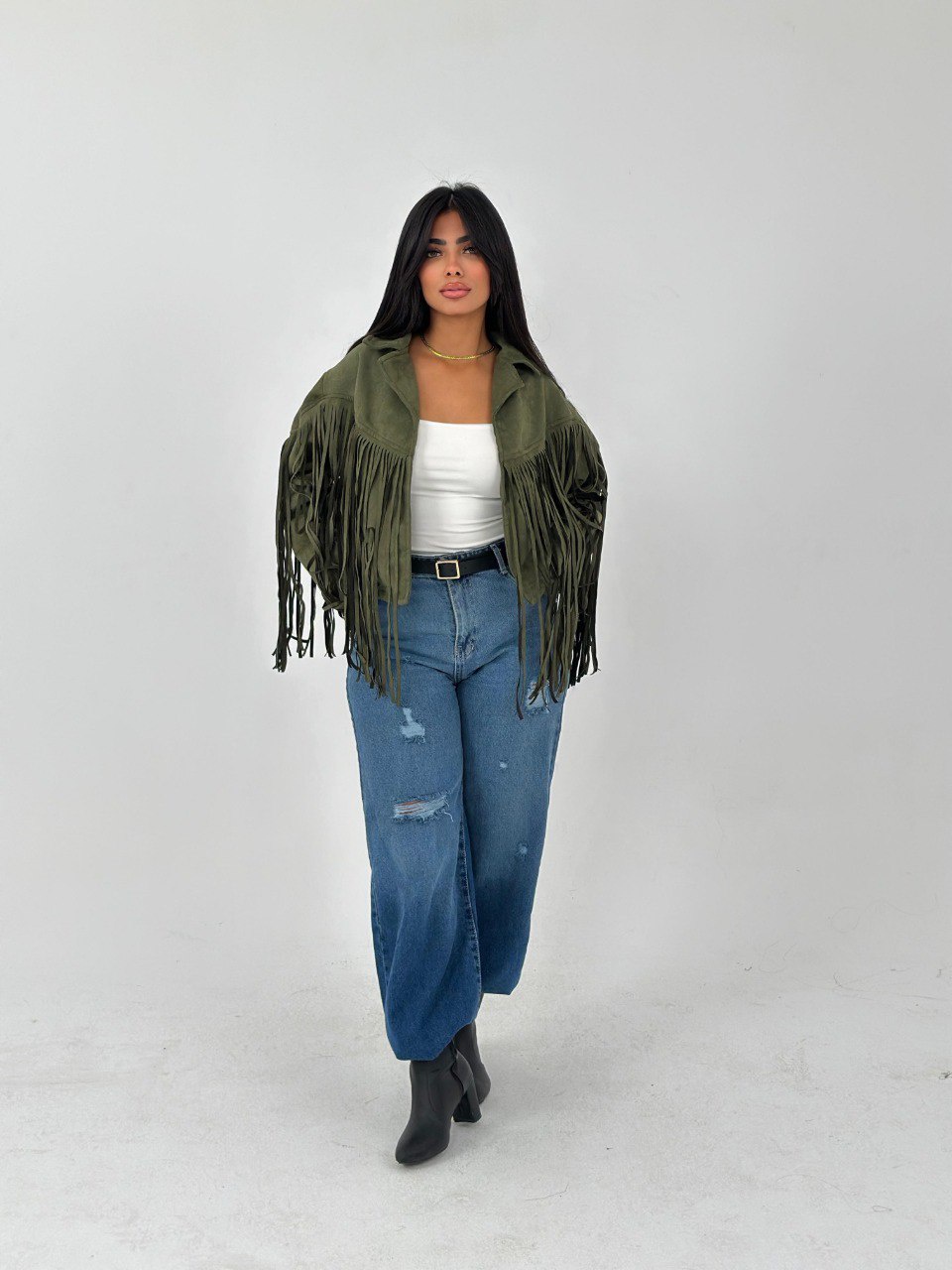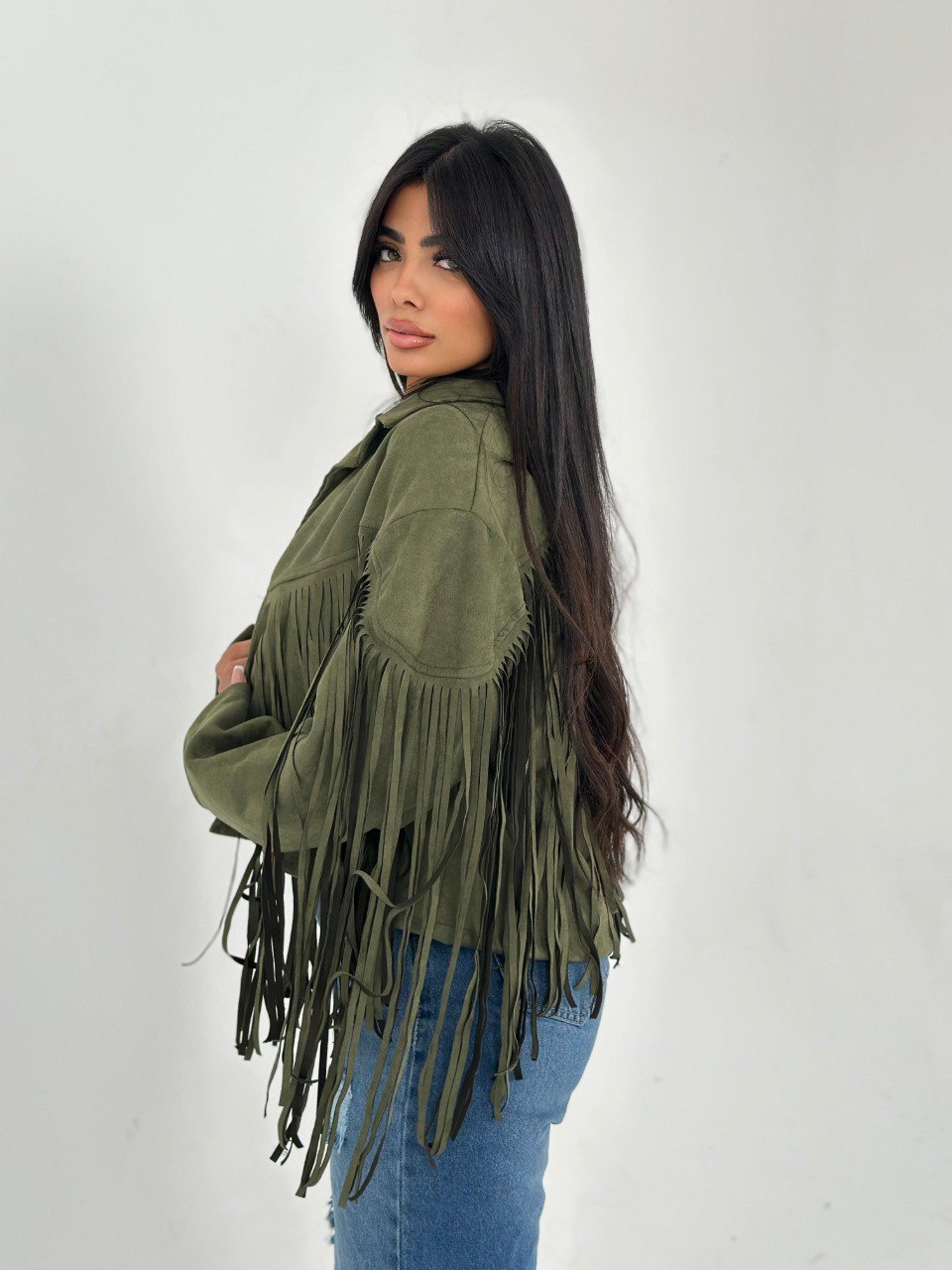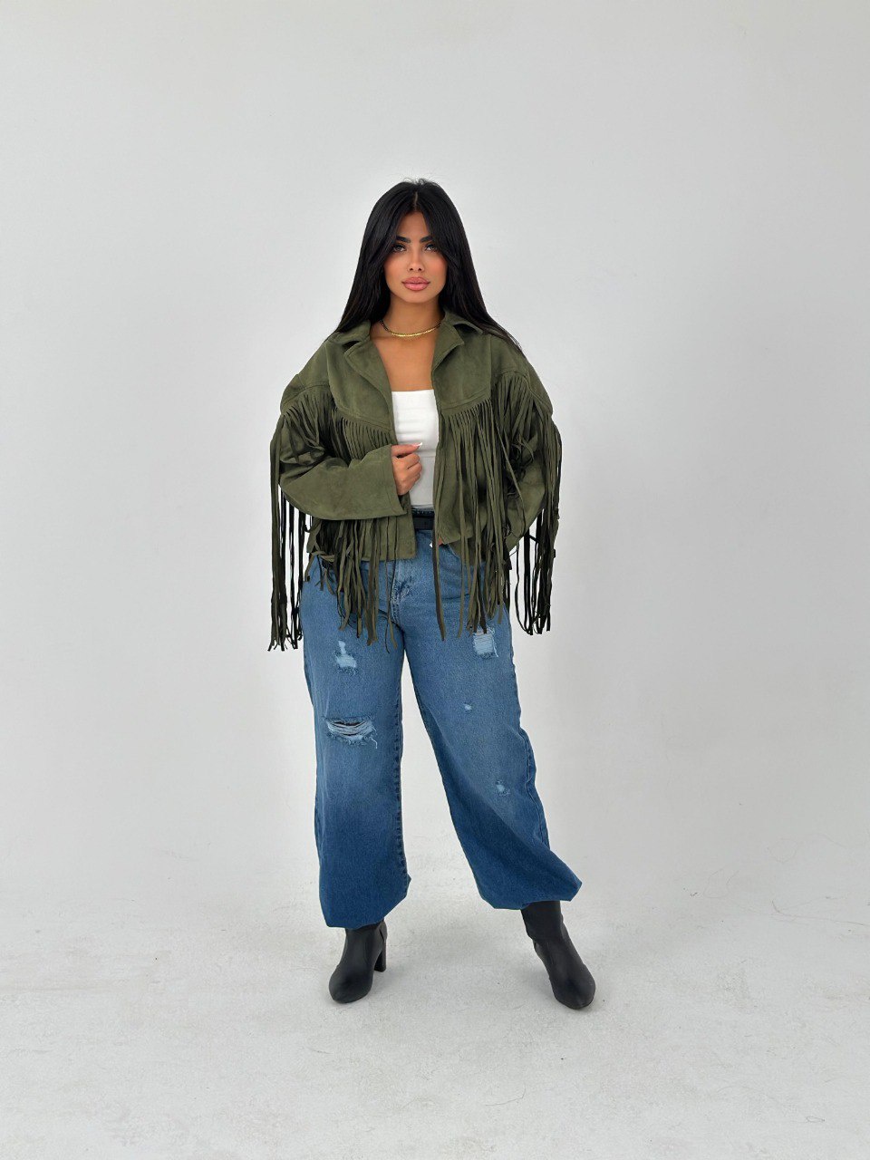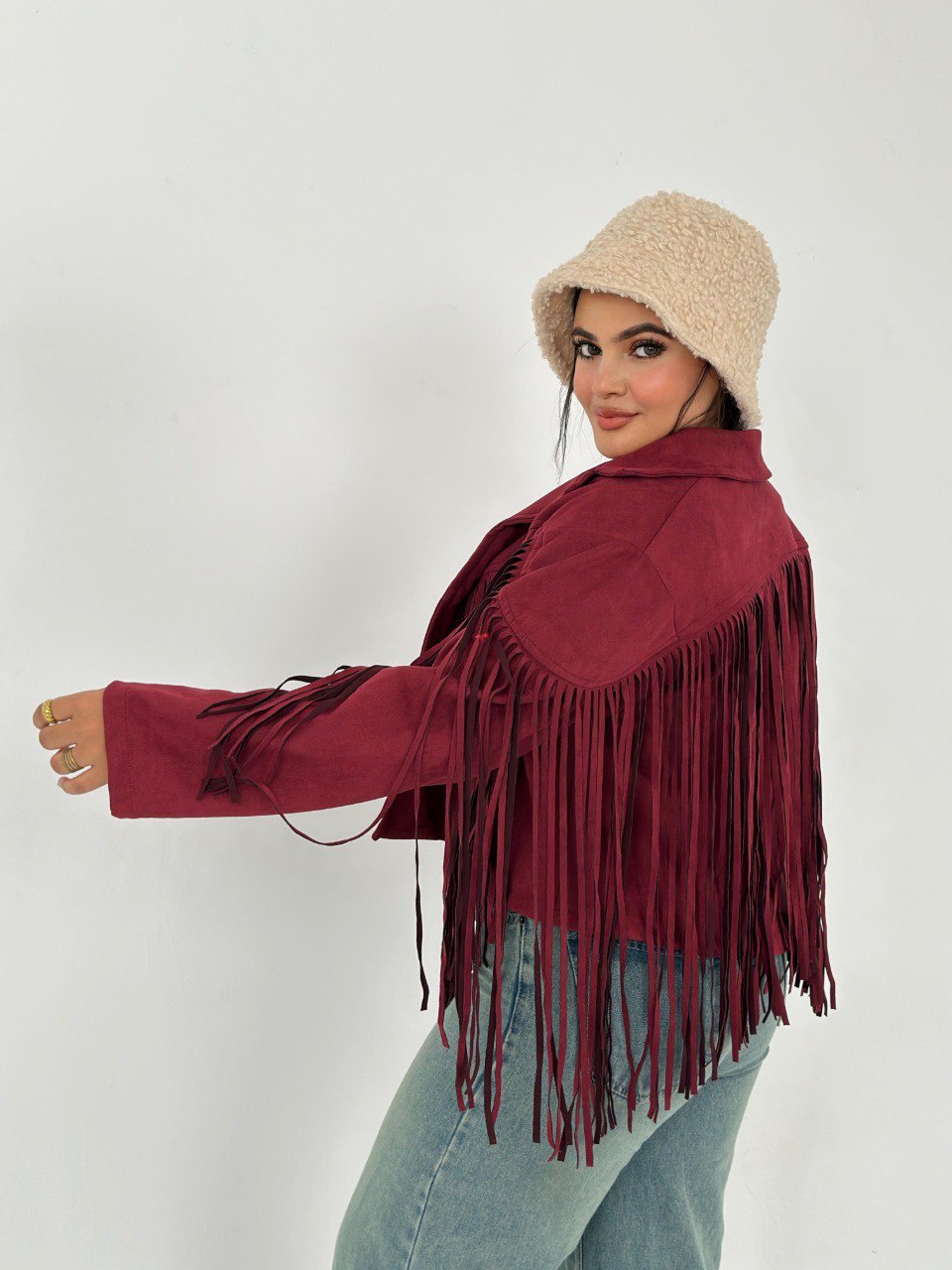 لو عايز تضيف لمسة من الأناقة لملابسك، يبقى الجاكيت الشمواه بشراشيب هو الخيار المثالي ليك! خامته ناعمة ومريحة، هتخليك تحس بالراحة في كل الأوقات. متوفر بلونين مميزين: زيتي وبرجاندي، هتلاقي نفسك متألق في كل مناسبة!