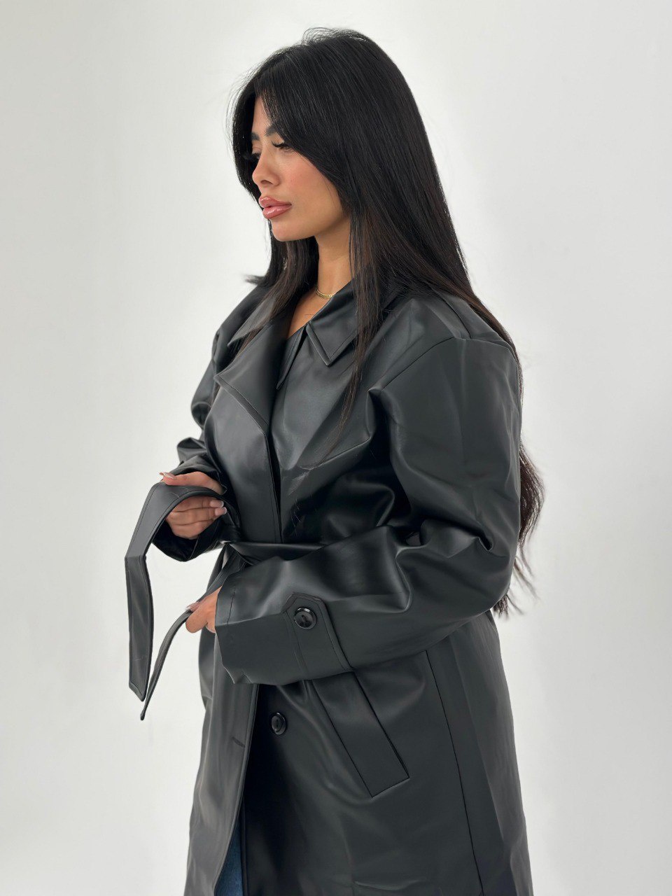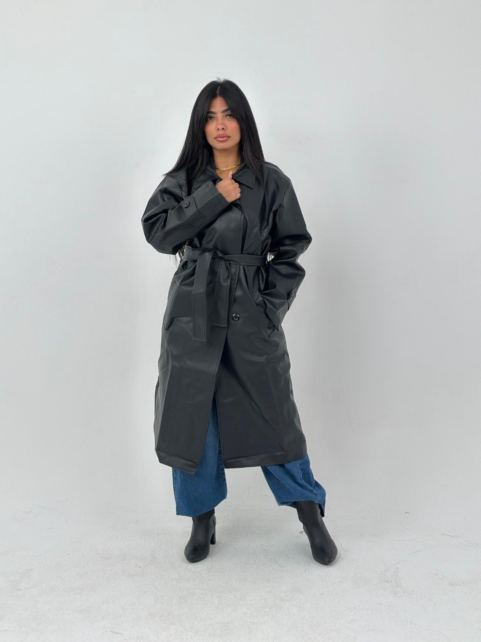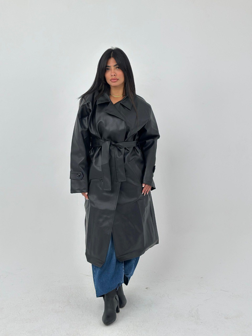 هل تبحثين عن كوت يجمع بين الأناقة والعملية؟ كوت الجلد الشيكي هو الخيار المثالي لك! تصميمه العصري وقصته الأوفر سايز مع حزام يحدد الخصر يجعل منه خياراً رائعاً لتنسيق إطلالتك الشتوية. سواء كنت ترغبين في الخروج مع الأصدقاء أو في مناسبة خاصة، هذا الكوت سيضمن لك مظهرًا مميزًا وجذابًا.