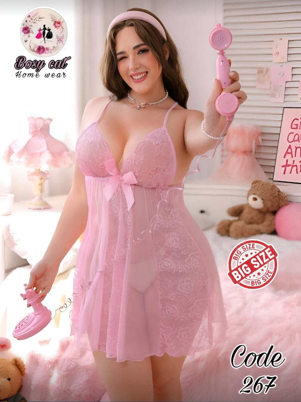 هل تبحثين عن لانجيري يجمع بين الراحة والأناقة؟ لا داعي للبحث أكثر! لانجيري بيج سايز من خامة باور ف دانتيل مستورد ناعمة يوفر لكِ الراحة التي تحتاجينها مع شكل أنيق يبرز أنوثتك. فري سايز مناسب من 75 لحد 110 كيلو، ليضمن لكِ التناسب المثالي بغض النظر عن مقاساتك.