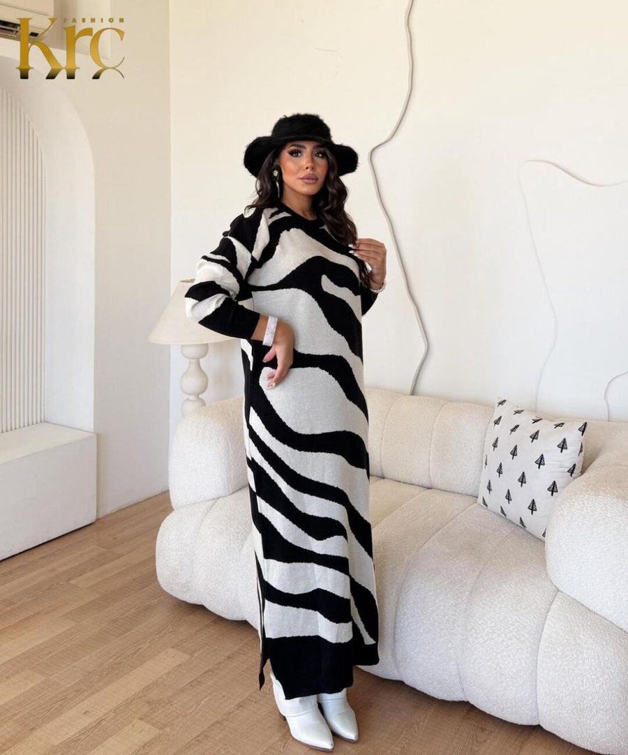 تقدري تطلعي بأجمل إطلالة مع لونج دريس تريكو زيبرا. خامة عجينة تقيلة بتخليكي تحسي بالراحة والفخامة في نفس الوقت. الدريس ده هيكون الاختيار المثالي لأي مناسبة، سواء كانت نزهة مع الأصدقاء أو مناسبة خاصة!
