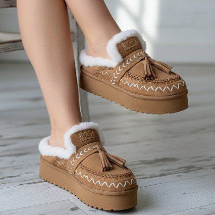 صابو مبطن فرو تريندي، مستورد بالكامل، خفيف وعملي، مناسب الشتاء، متوفر باللون الأسود والهافان، مقاسات من 37 إلى 41.