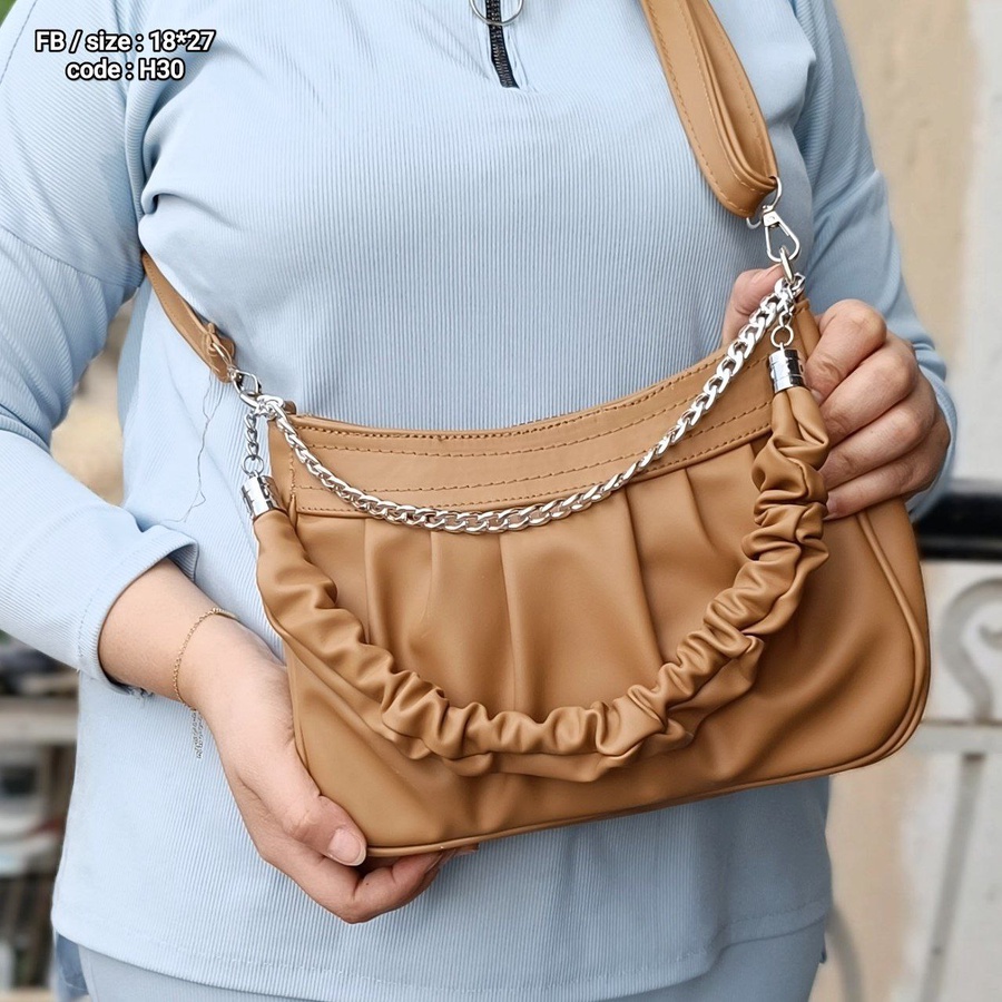 تبحثي عن شنطة تناسب إطلالتك اليومية وتكون عملية في نفس الوقت؟ الشنطة دي هتكون الخيار المثالي ليكي! تصميمها العصري مع السلسلة والمسكه المريحة هيديك احساس بالراحة والأناقة في كل مكان تروحيه.
