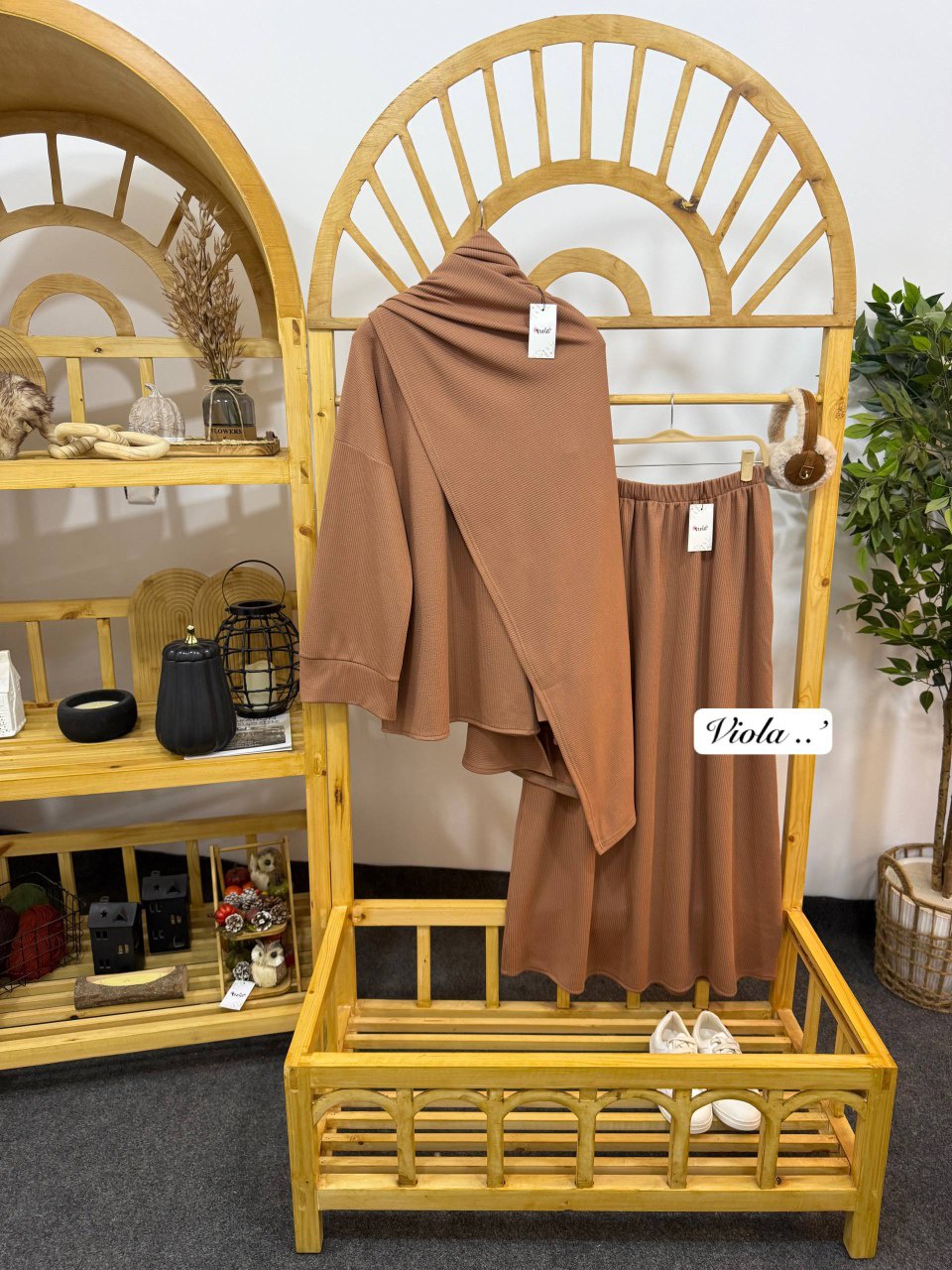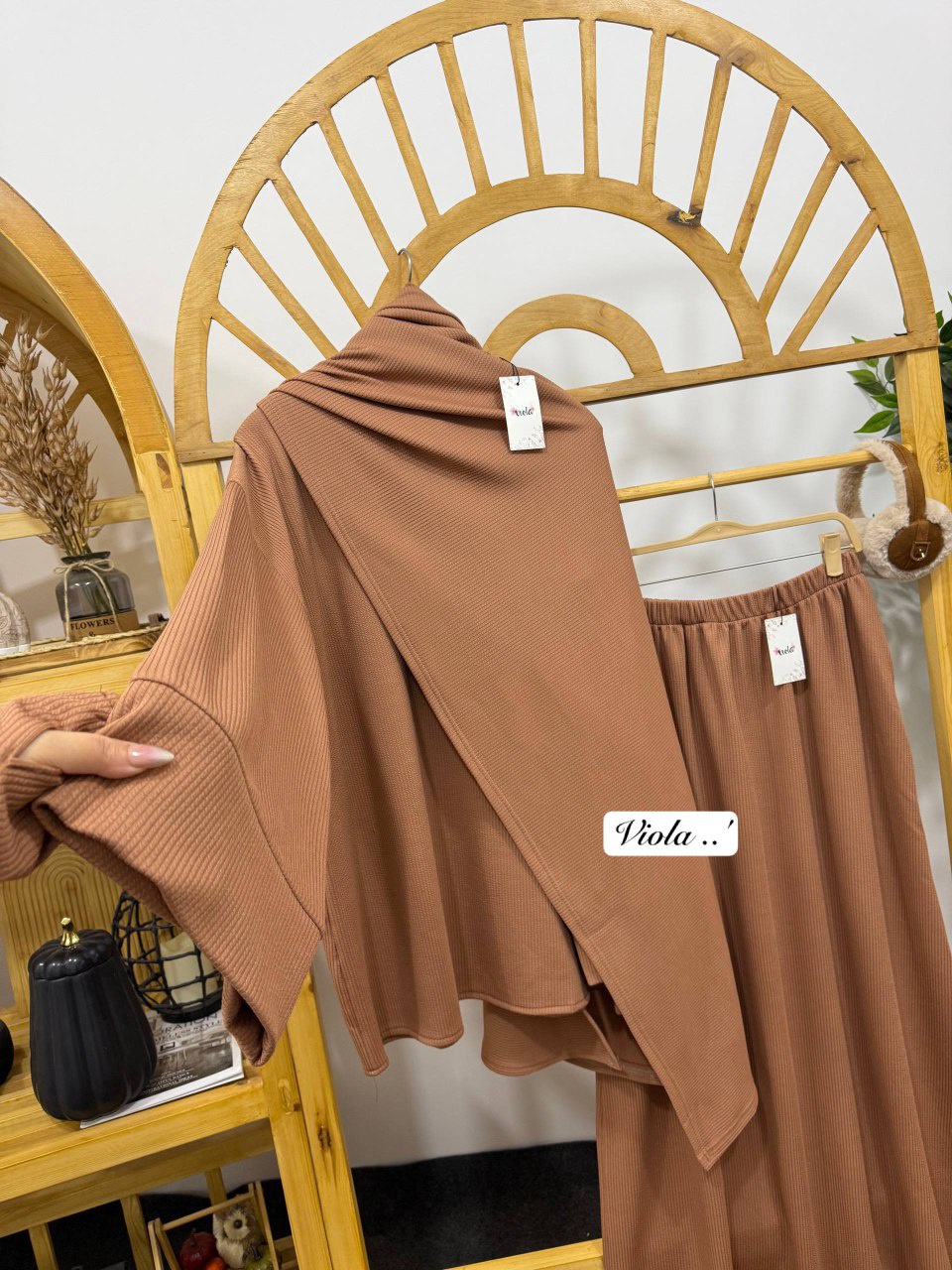 لو بتدوري على ستايل يدمج بين الراحة والأناقة، سوت شال 4 قطع هو الخيار المثالي ليكي! معانا هتلاقي 4 قطع متكاملة تشمل بلوزة أوفر سايز، جيبة كلوش، معصم، وشال عريض، كل ده بخامة ماجيك المستوردة المبطن بالكامل.