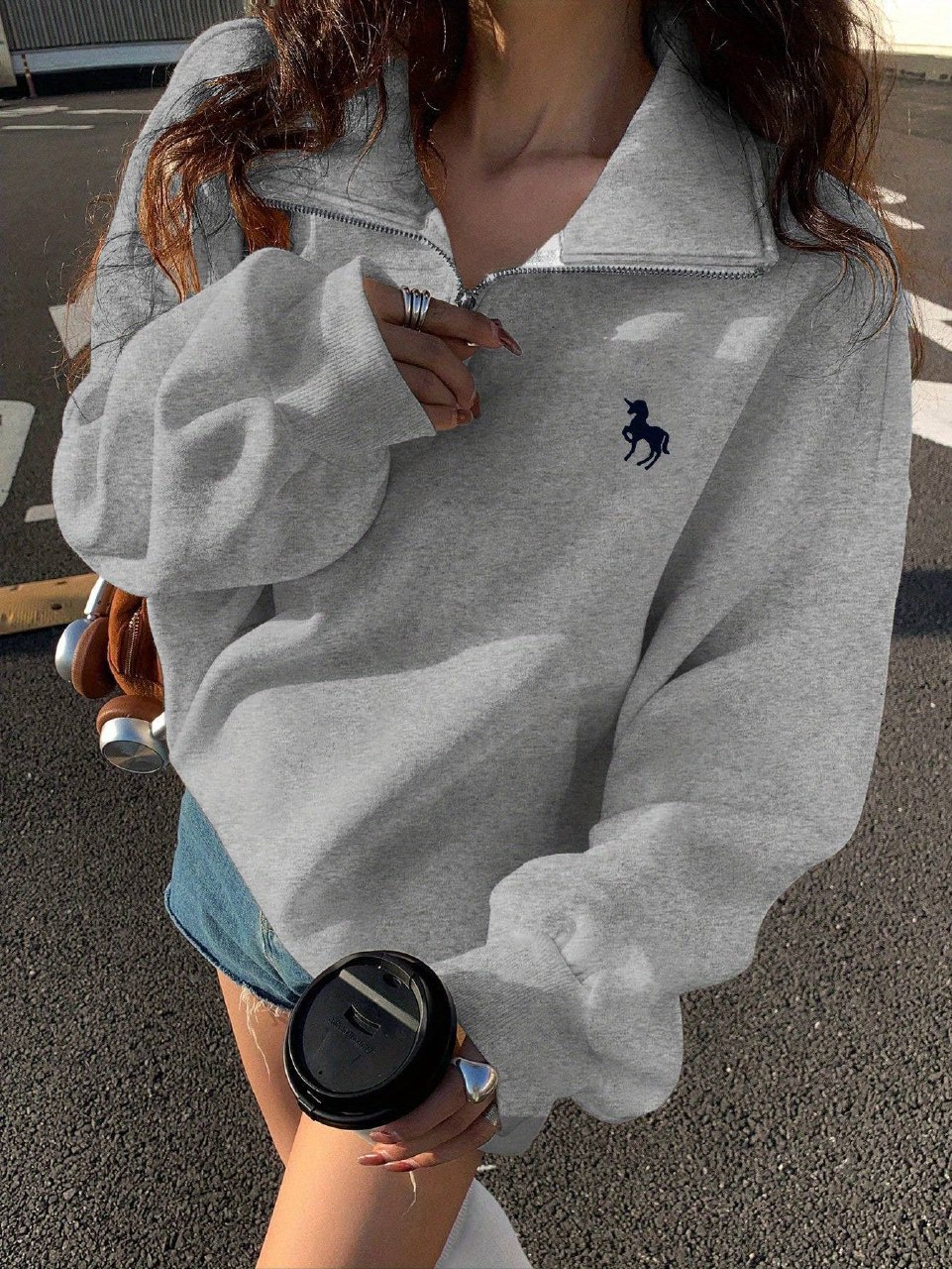 سويت شيرت جراي شيك جدًا، خامة ناعمة ومريحة للبس اليومي، ستايل عملي ينفع للخروج والجامعة والمشاوير، سهل التنسيق مع جينز أو ليجنز، قطعة أساسية في دولابك 🤍