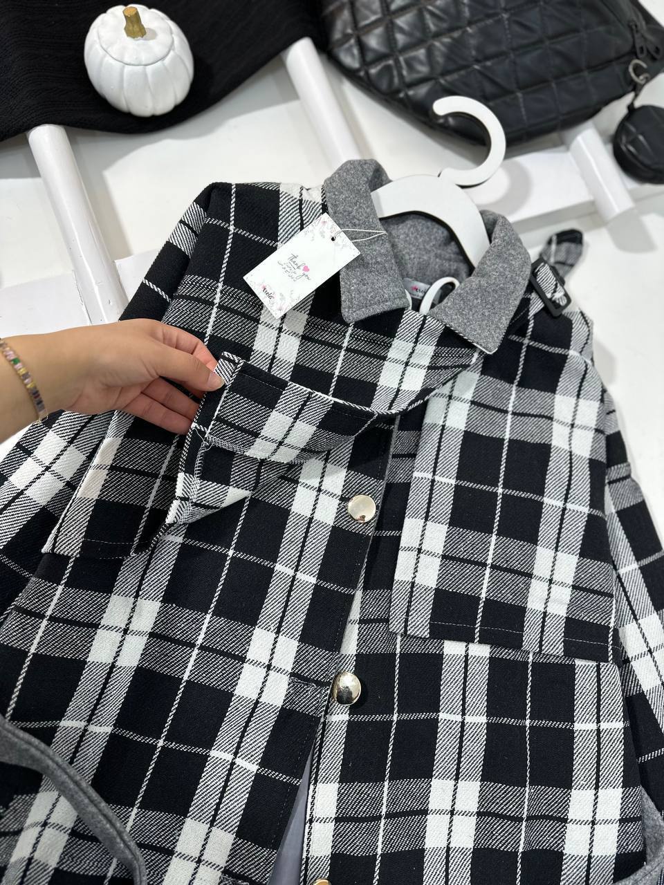 هل تبحثي عن شيء يجمع بين الأناقة والراحة؟ لا تفوتي فرصة الحصول على تنج كوت كاروهات صوف! الكاروهات هي الموضة الرائجة، والخامة الصوف المبطن بالكامل مع الجوخ المستورد باللون الرمادي تجعل منه الاختيار المثالي لأي مناسبة. مع تصميمه العصري، يمكنك ارتداؤه مغلقًا أو مفتوحًا حسب رغبتك، مما يضيف لمسة عصرية على مظهرك.
