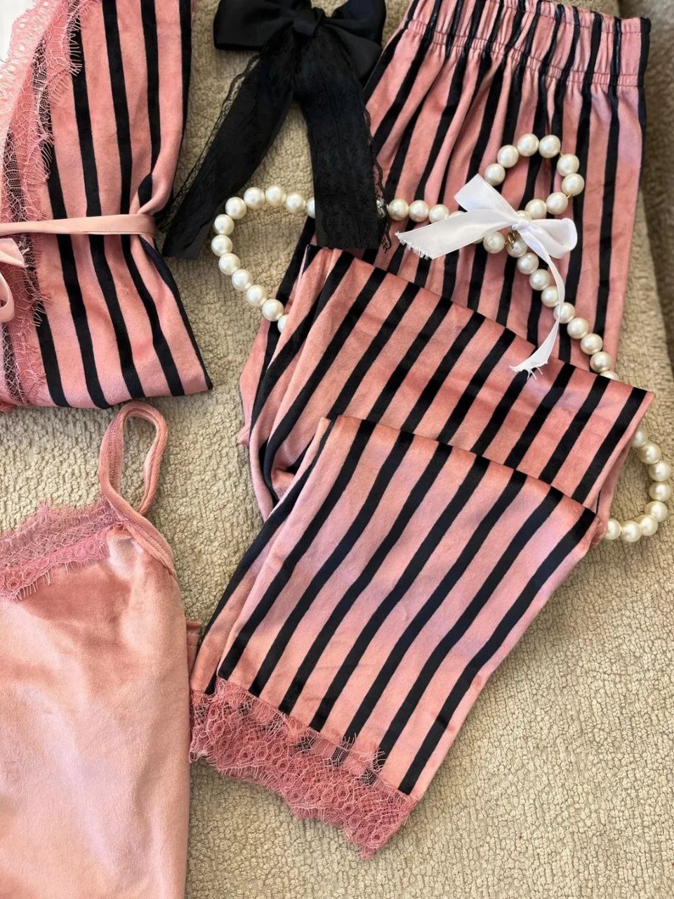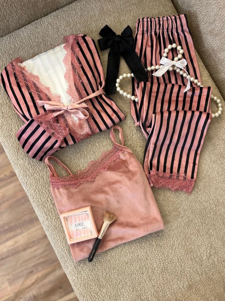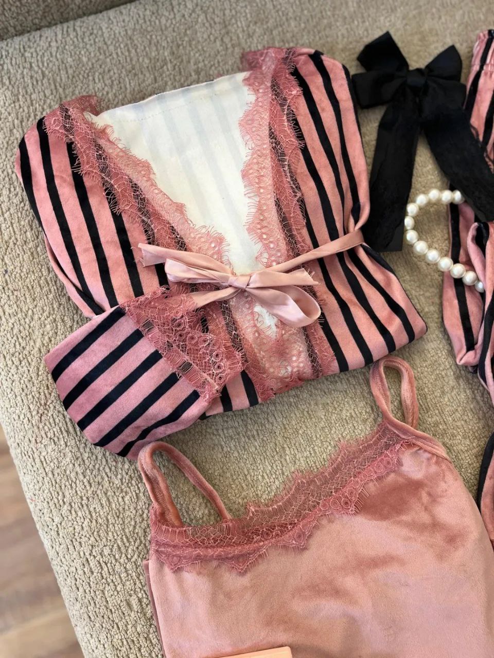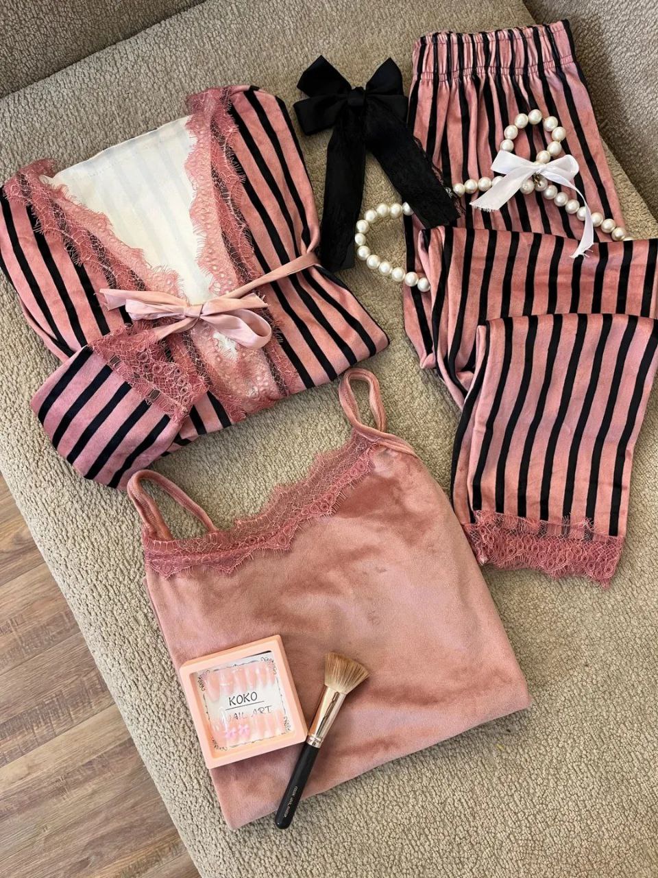 هل تبحث عن الراحة والأناقة في منزلك؟ طقم ٣ قطع قطيفة هايدي هو الاختيار المثالي لك! مصنوع من قماش قطيفة ناعم ومريح، ستحب ارتداءه في كل الأوقات. تصميمه الشيك والمخطط يجعله مناسبًا للنوم أو للاسترخاء في المنزل. هذا الطقم يناسب أحجام من ٥٠ لحد ٧٥ ك، مما يجعله مثاليًا للجميع.