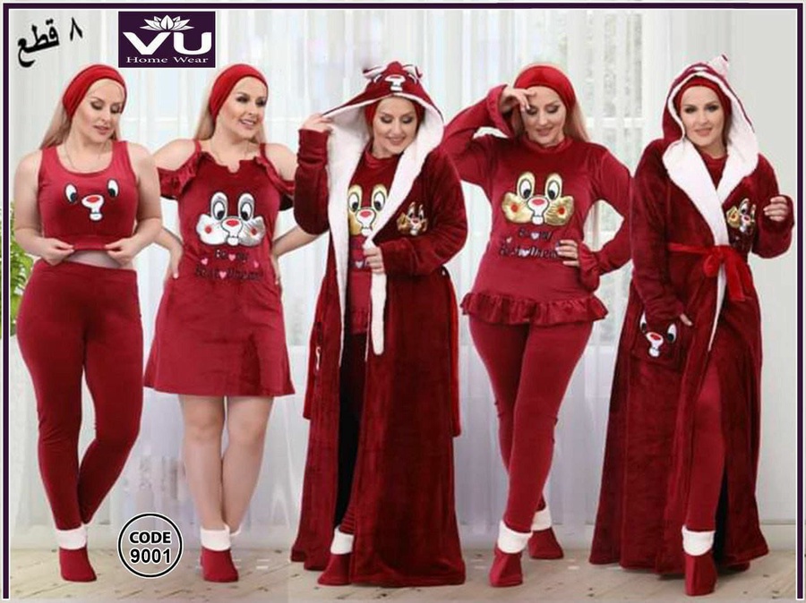 استمتع بالراحة والأناقة مع طقم البيجامة الشتوي المكون من 8 قطع!
