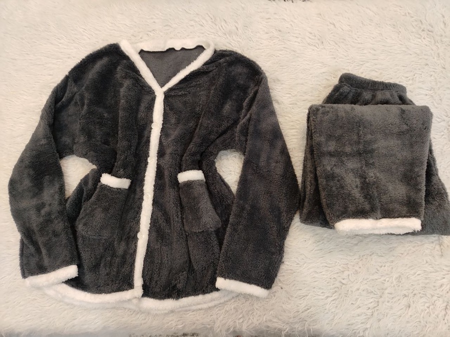 طقم بيتي قطعتين خامة بولار وشين، دافي وناعم، مصمم خصيصًا لتلبية احتياجاتك في فصل الشتاء. بفضل تصميمه الشيك والمريح، يمكنك ارتدائه في المنزل بكل ثقة وراحة. يصلح للنساء من مقاسات 65 حتى 85، مما يجعله خيارًا مثاليًا للجميع.