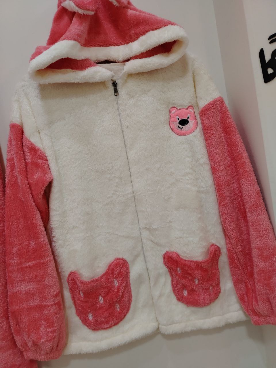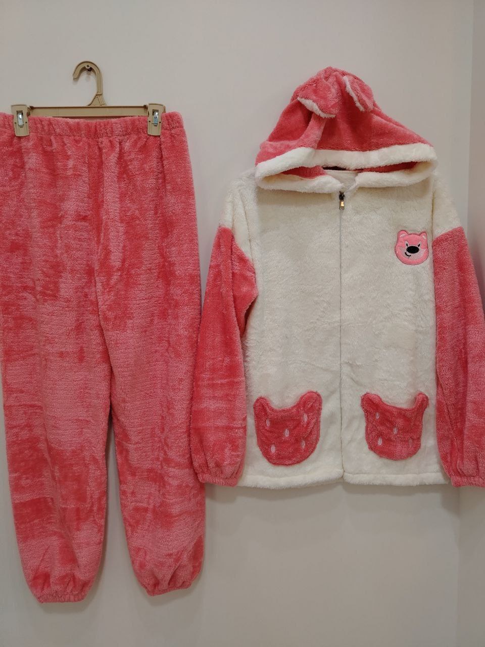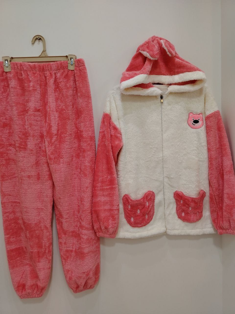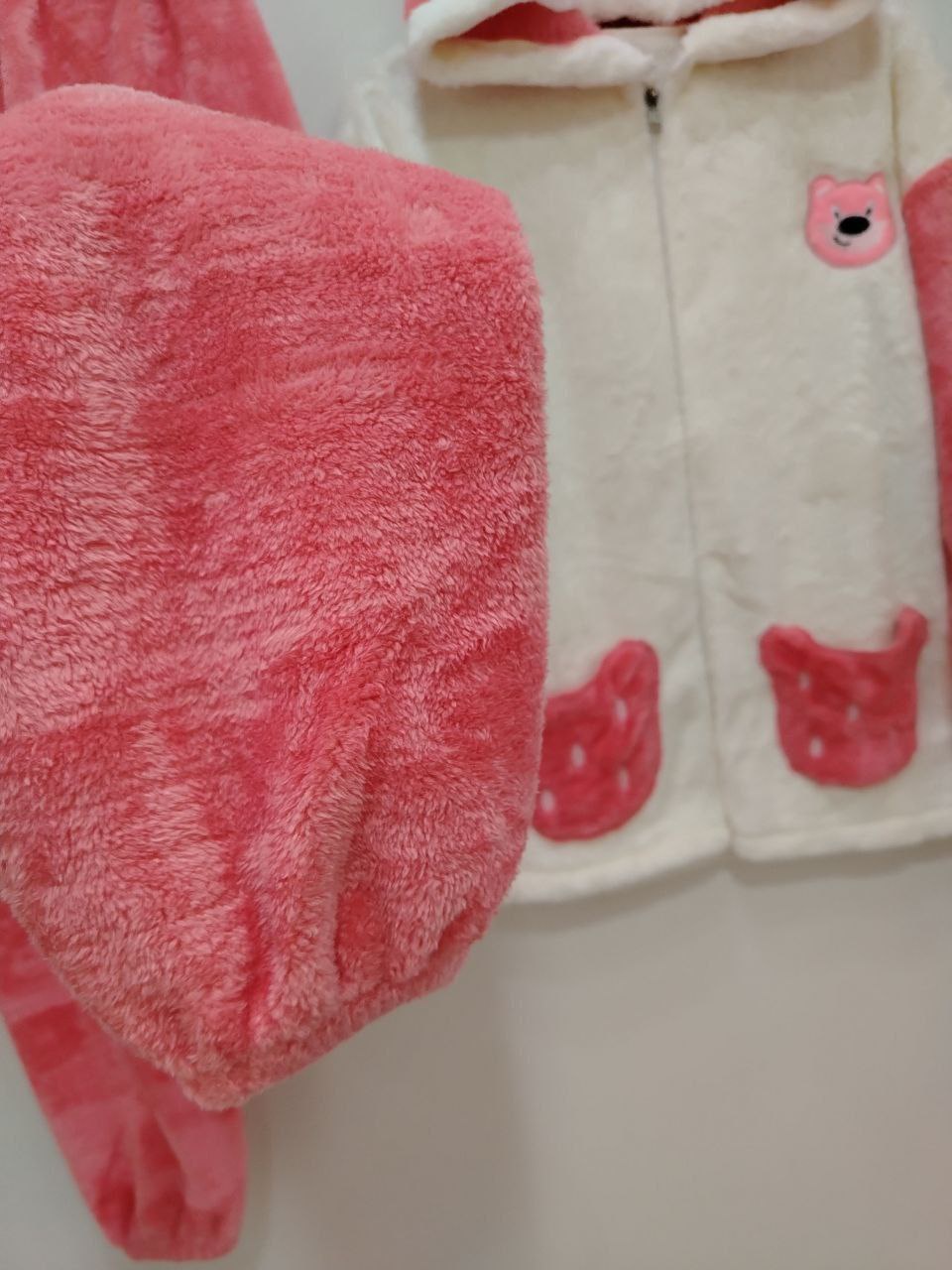 هل تبحث عن طقم مريح ودافي يناسب أجواء الشتاء؟ إليك طقم بيتي قطعتين من خامة الفرو الناعم. تصميمه الكيوت والعملي يجعل منه خيار مثالي للبيت أو للخروج في أي وقت. مصنوع من خامة عالية الجودة، ستحس بالراحة والدفء كلما ارتديته!