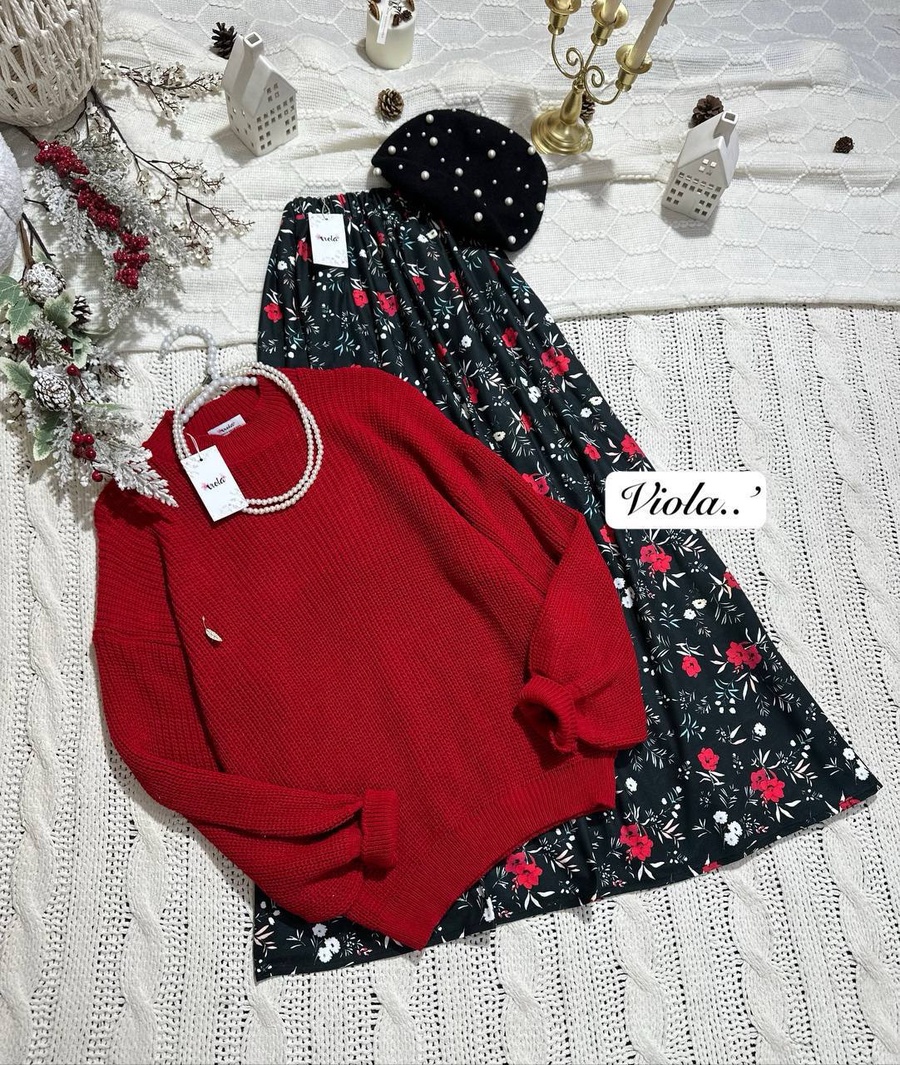 الملمس الناعم والخامة الفريدة تجعل هذا الطقم الخيار المثالي لشتاء دافئ وأنيق. الجيبة مصممة بشكل كلوش، مما يمنحك حرية الحركة وراحة لا تصدق.