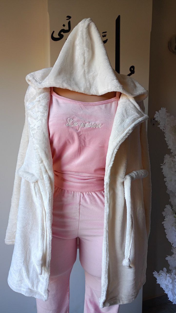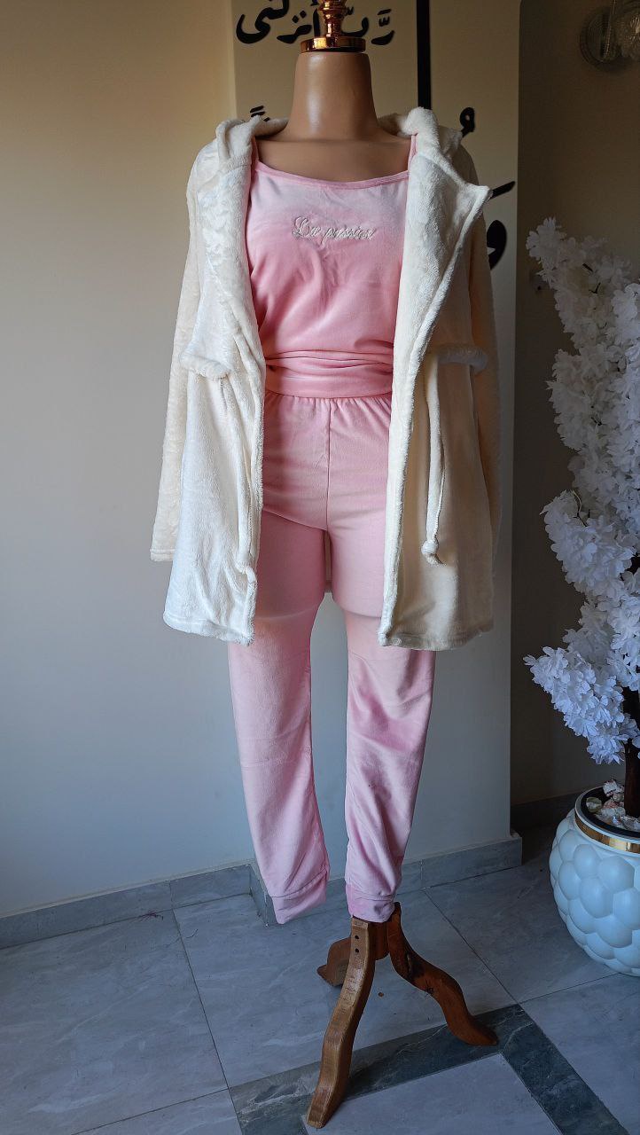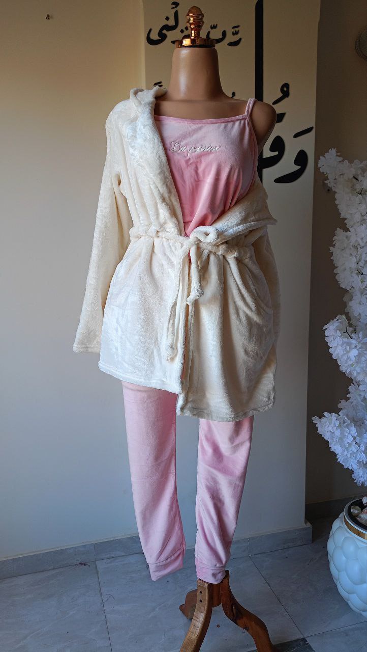 طقم حريمي 3 قطع خامة قطيفة وشين مع بولار وشين مستورد، دافئ وناعم ومريح جدًا، مناسب للبيت والخروج، تلبيس من 60 لحد 75 كيلو.