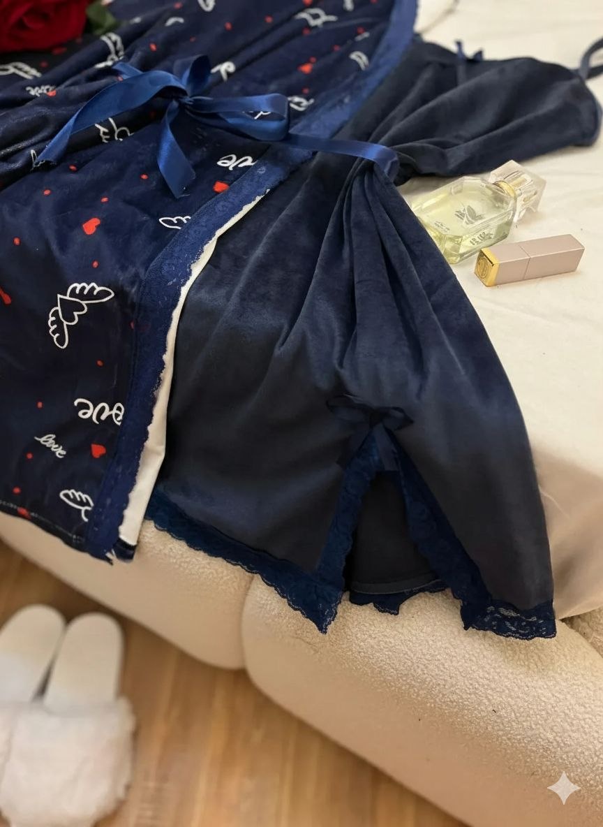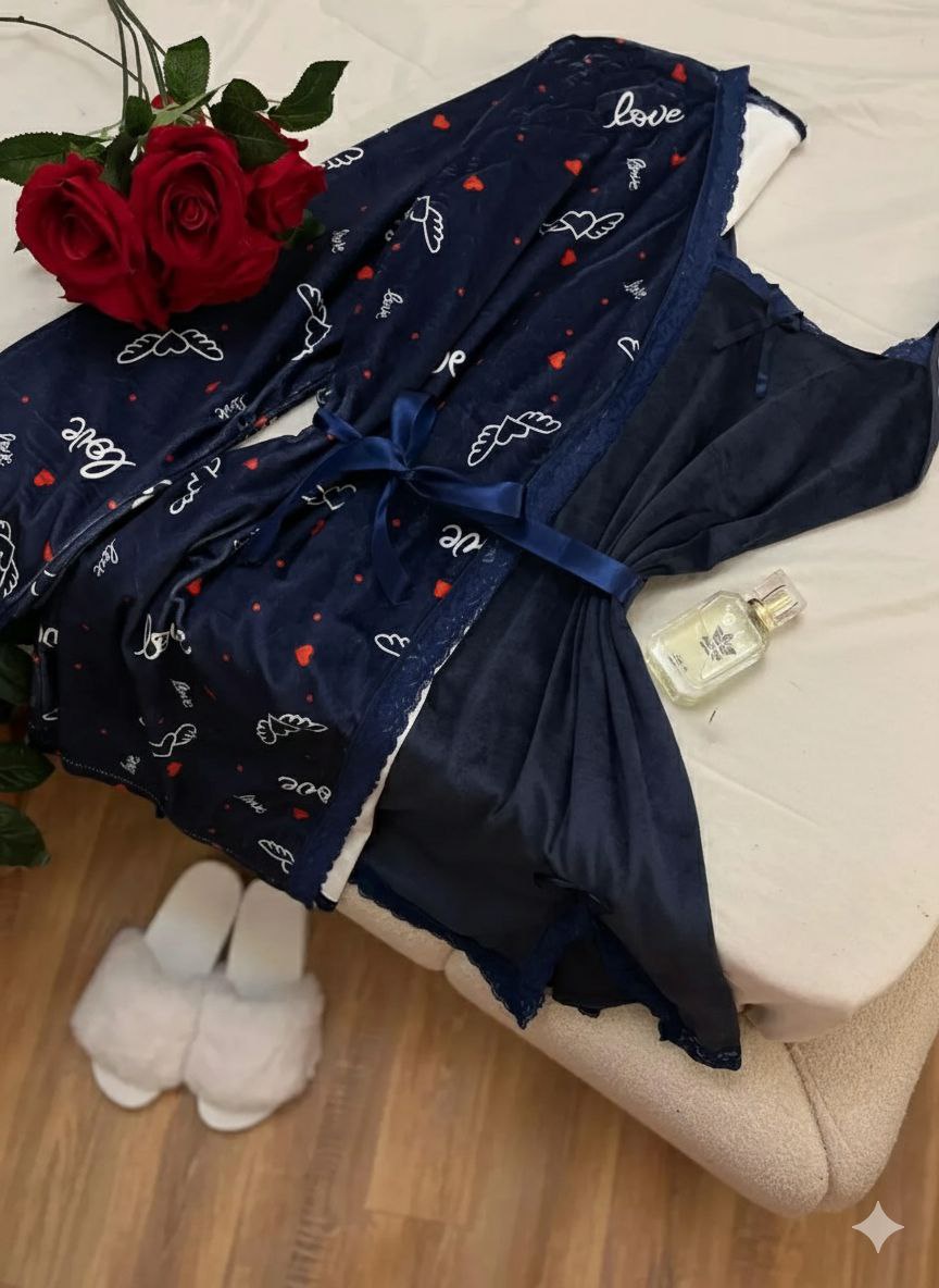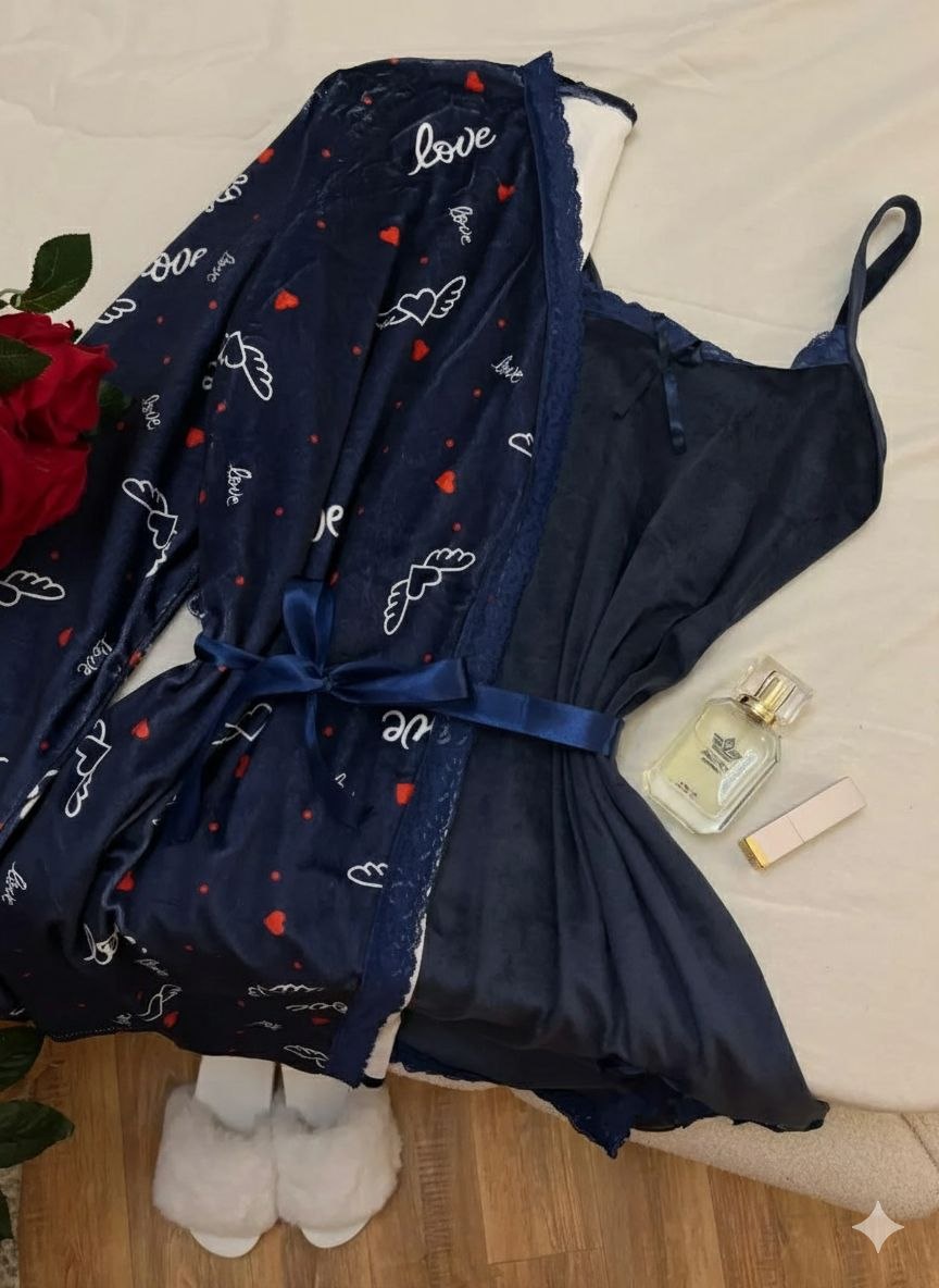 طقم حريمي بيج سايز روب وفستان شتوي، خامة ناعمة ودافية، تصميم شيك ومريح، مناسب للمقاسات الكبيرة