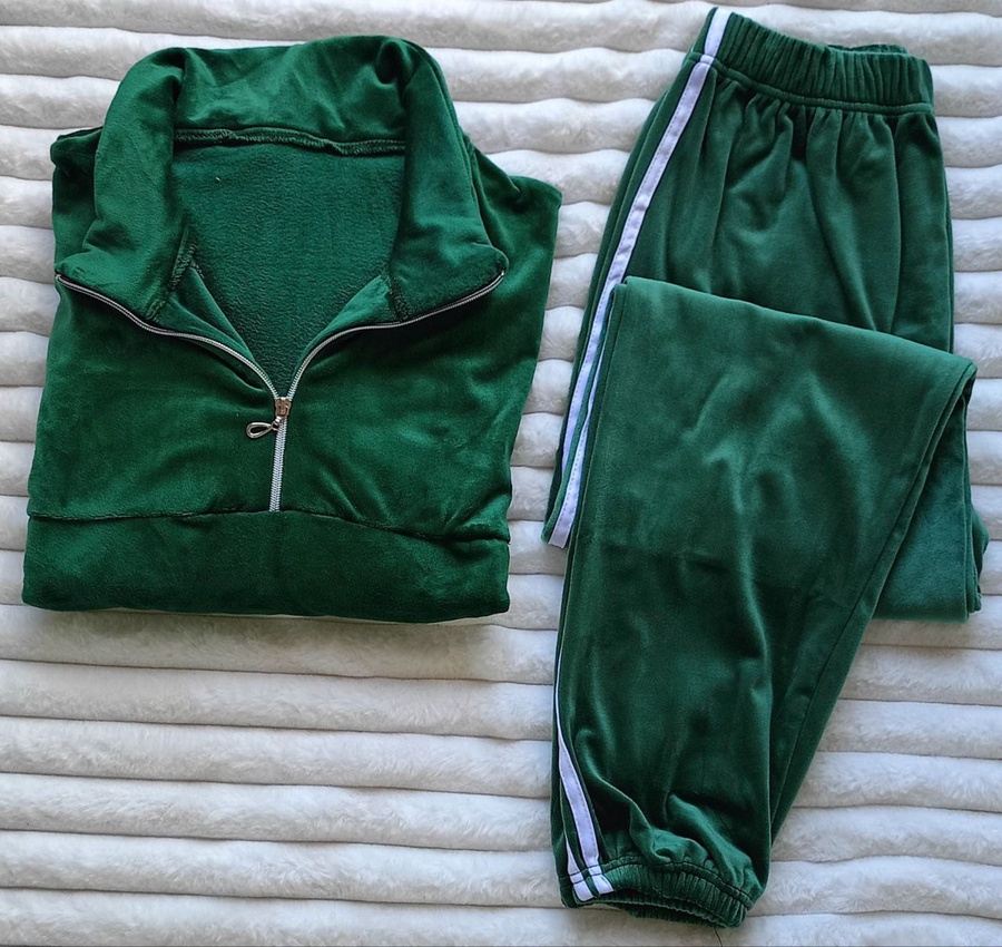 طقم حريمي 2 قطعة خامة قطيفة وشين ناعمة، تصميم سبور شيك ومريح جدًا، مناسب للبيت والخروج، تلبيس من 60 لحد 75 كيلو.