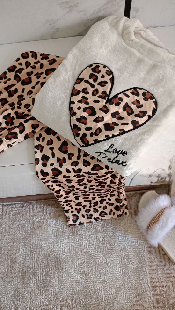 طقم حريمي شتوي 2 قطعة ليوبارد بخامة بولار وشين مع قطيفة هايدي مستوردة، دافي وناعم جدًا، تلبيس من 60 لـ80 كيلو