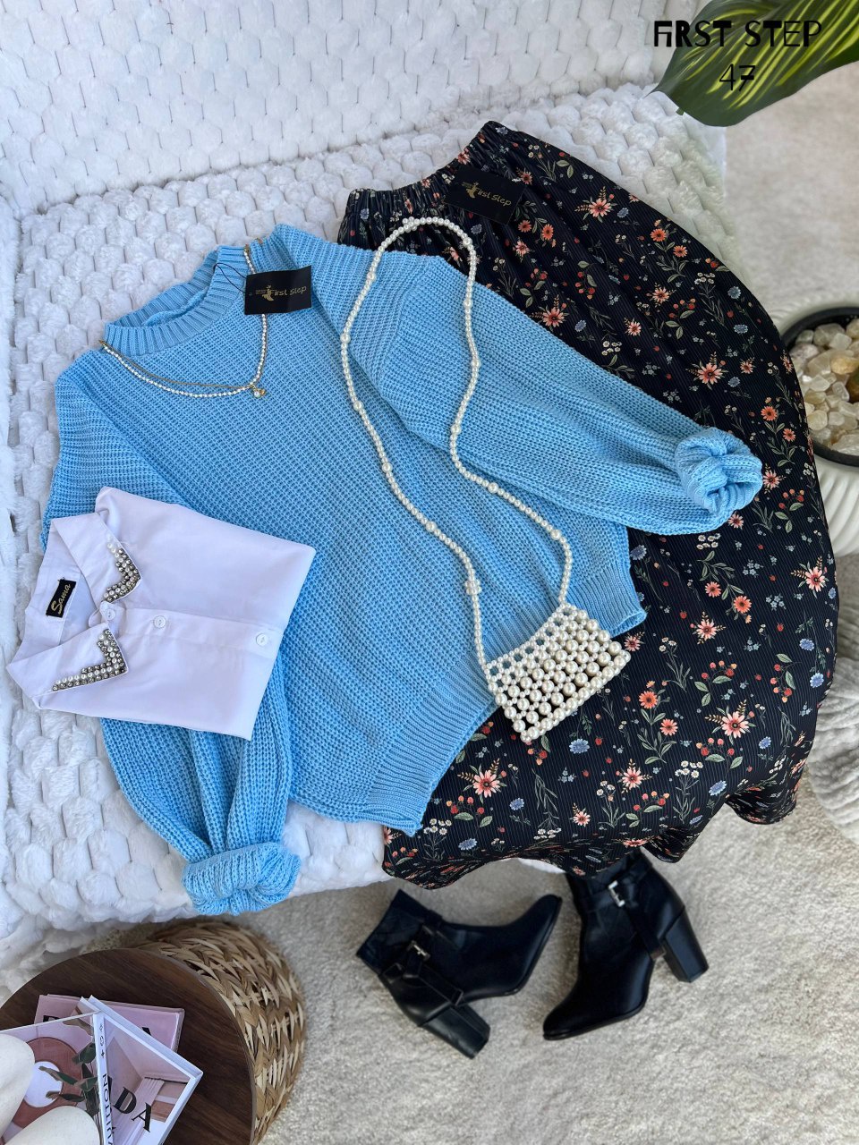 طقم جيب برينت مكوّن من بلوفر صوف تريكو ناعم وجيب كاردونيه برينت، هو الخيار المثالي للشتا! تصميم عملي وأنيق يناسب جميع المناسبات سواء كانت خروجة مع الأصدقاء أو مناسبة خاصة. مع حجم "ون سايز" يناسب حتى 90 كجم، ستشعرين بالراحة والأناقة في كل خطوة.
