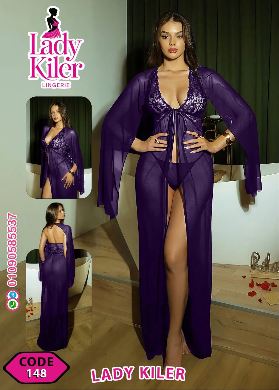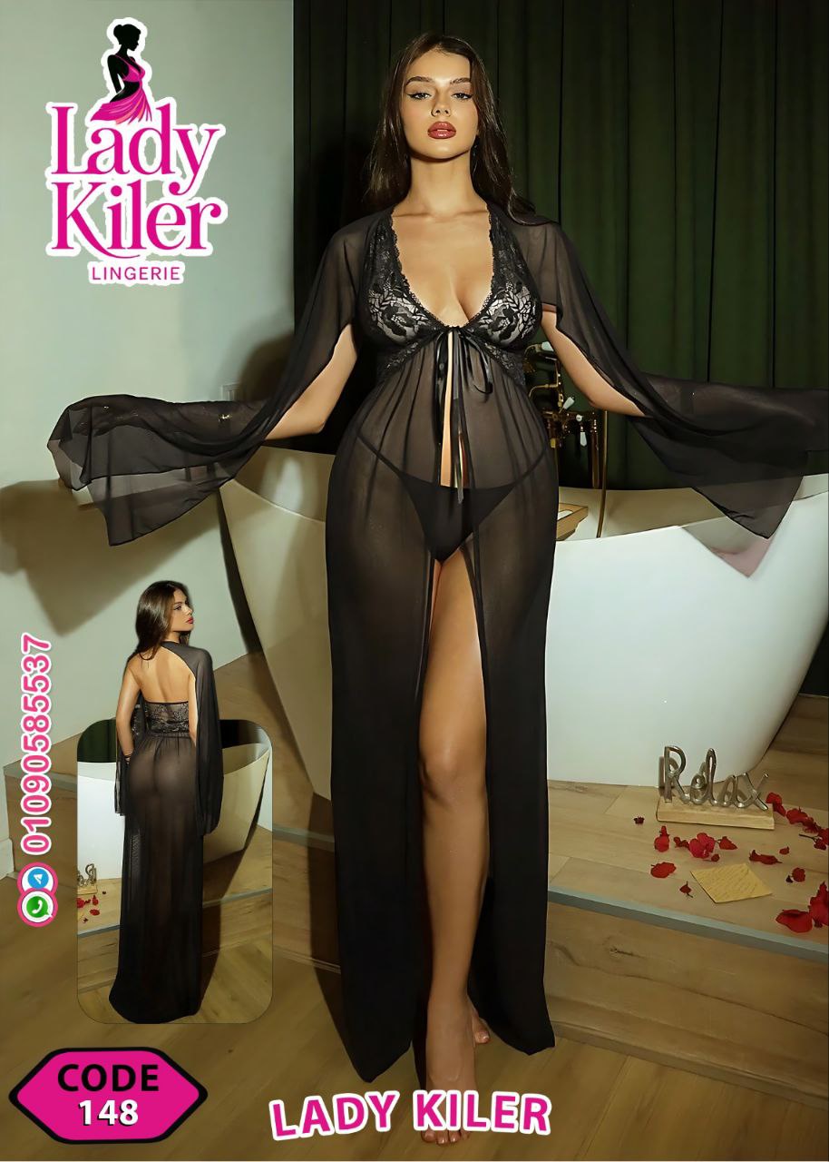 تقدري تعيشي لحظات ساحرة مع طقم لانجيري روب شيفون مع دانتيل أنيق. صممنا لكِ طقم يجمع بين الأناقة والراحة، حيث يتميز بتفاصيله الناعمة التي تبرز جمال قوامك بشكل رائع. الخامة المستوردة عالية الجودة تضمن لكِ الشعور بالرفاهية في كل لحظة. طقم فري سايز يناسب من 55 لحد 90 كيلو، يعني هتلاقيه مريح عليكِ مهما كان مقاس جسمك!