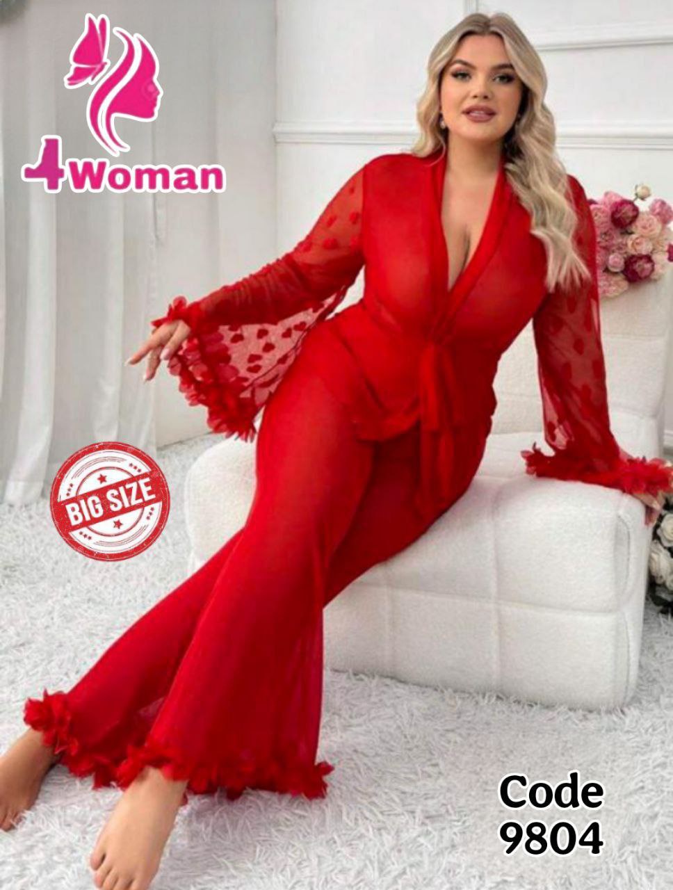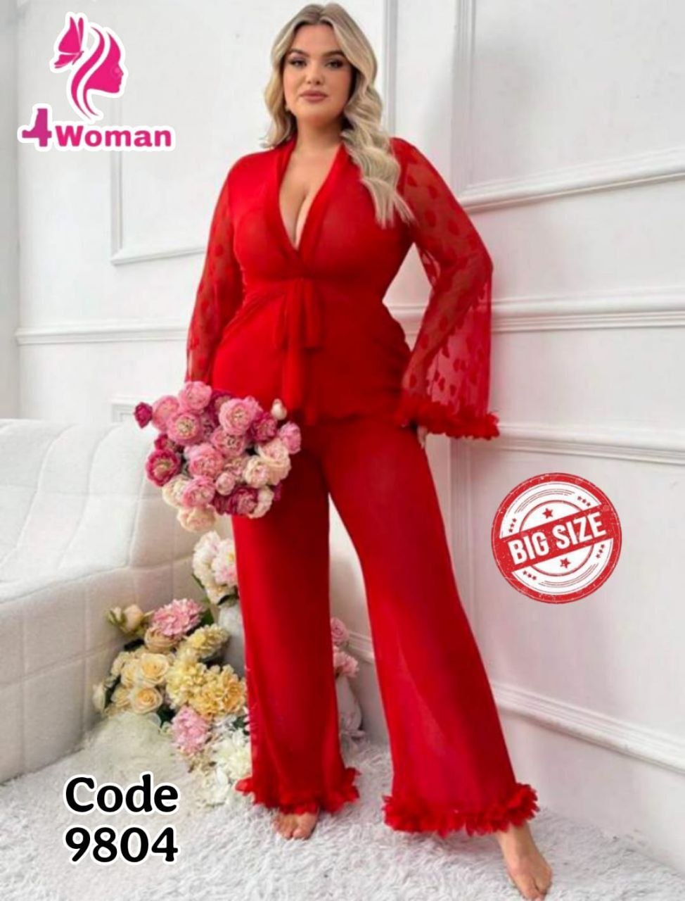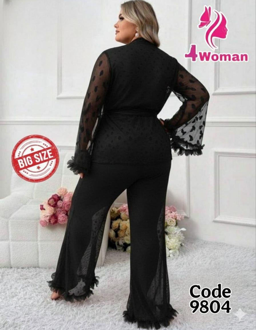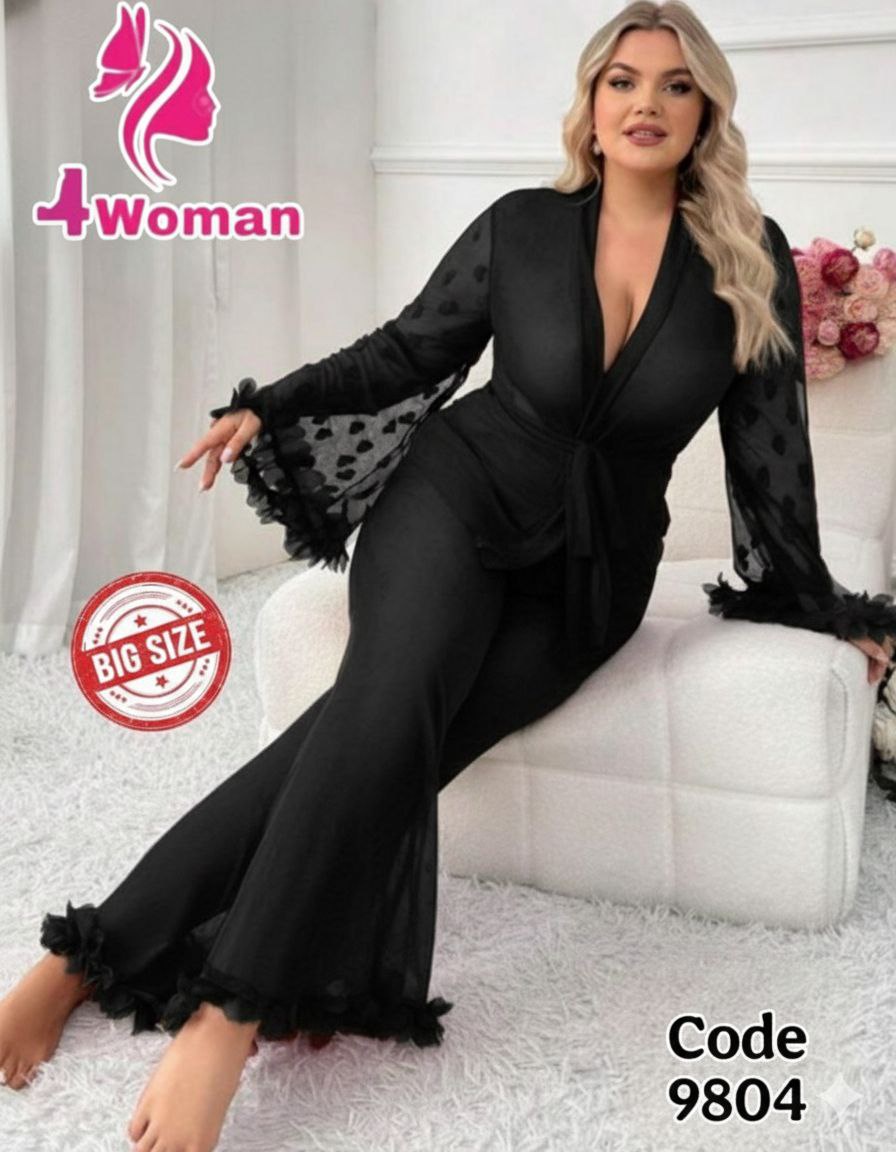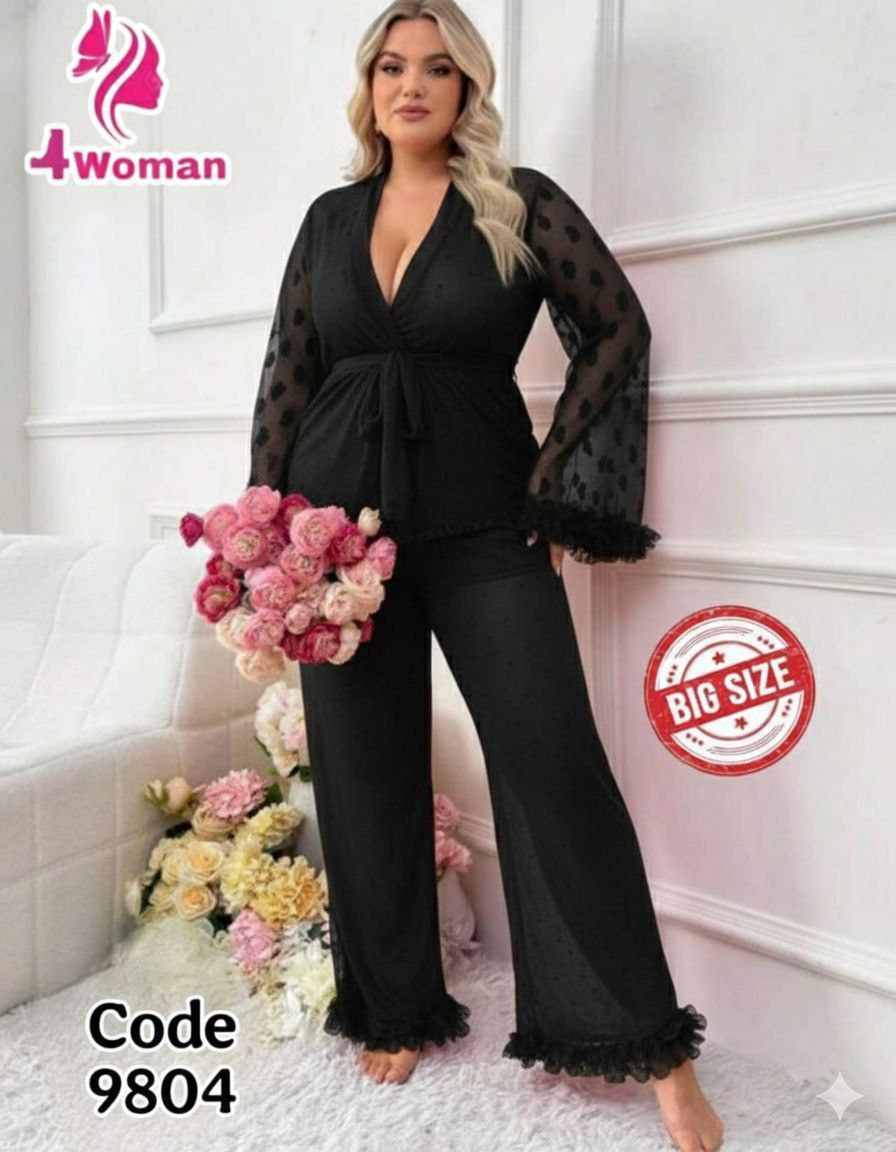 احصلي على إطلالة مميزة مع طقم القطعتين الرائع المصنوع من خامة زبدة في شيفون ناعم. هذا الطقم ليس فقط مريحًا، بل أيضًا شيك ويعكس ذوقك الرفيع. يناسب البيج سايز، حيث يضمن لك تلبيسًا مظبوطًا ومرنًا يتناسب مع وزن من 85 حتى 130 كيلو.