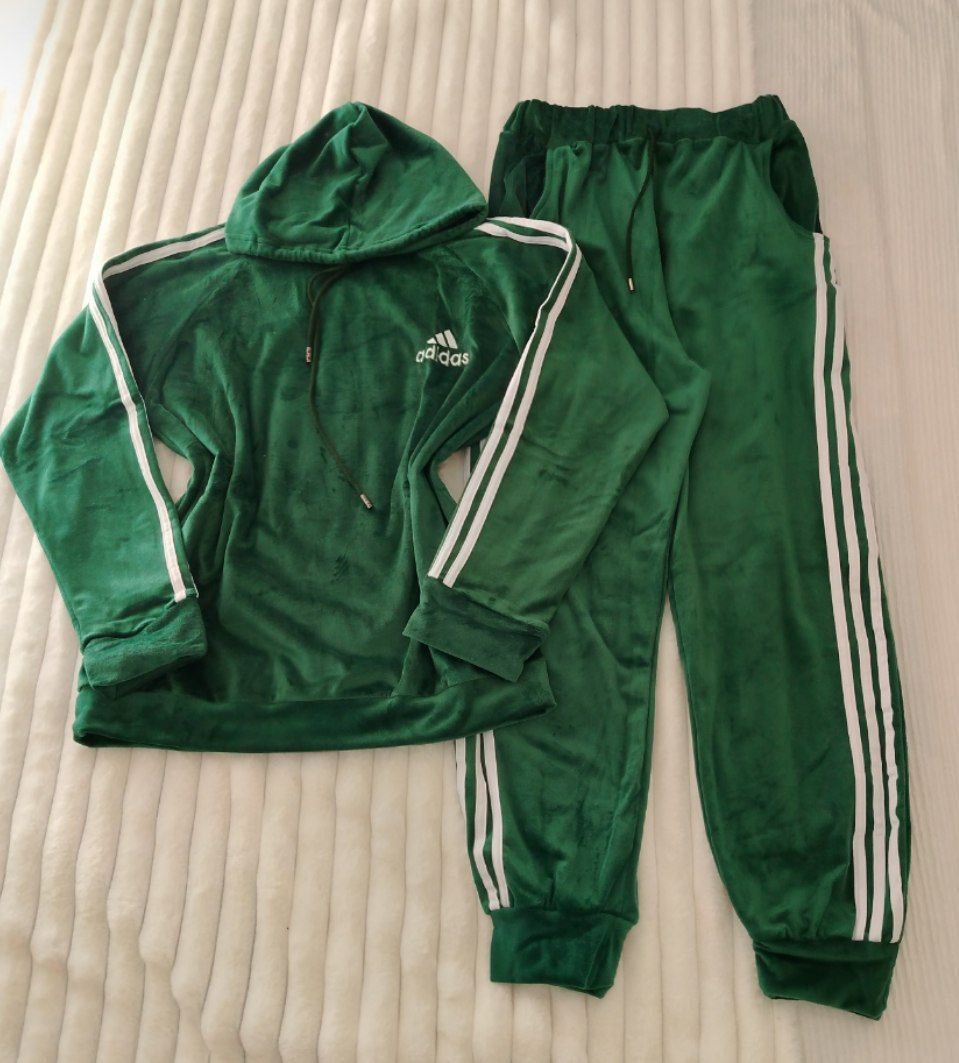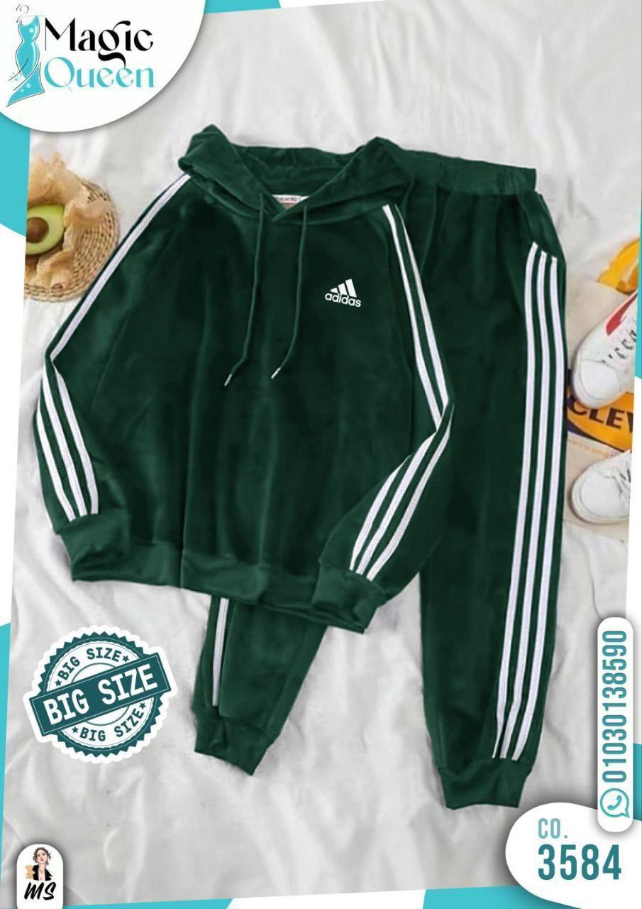 طقم تريننج حريمي 2 قطعة بخامة قطيفة وشين، ناعم ومريح في اللبس، ستايل رياضي عصري، مناسب للبنات والبيج سايز، تلبيس من 70 لحد 100 كيلو.